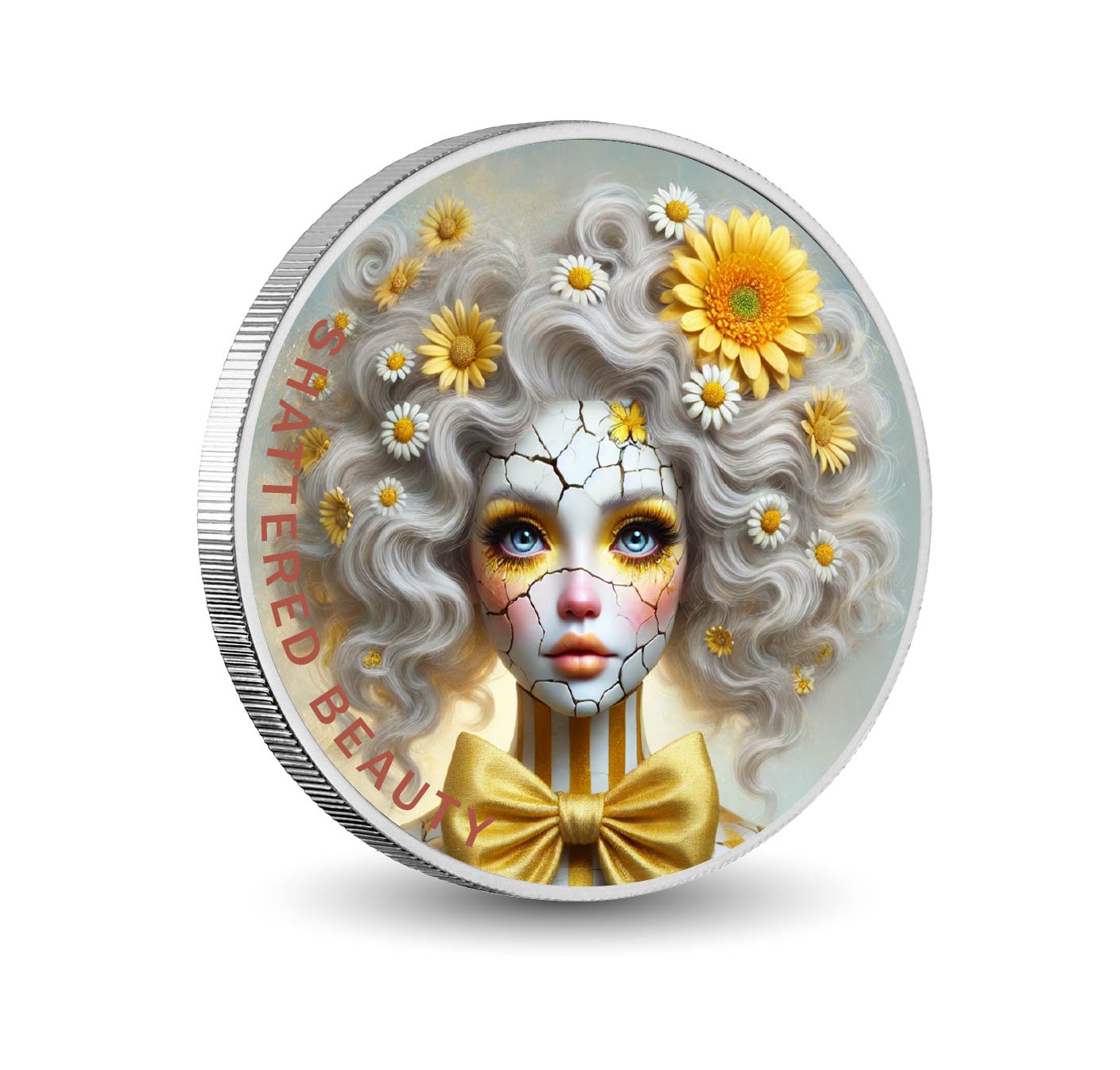 Discover the exquisite Shattered Beauty: Golden Silence Coloured 1oz Silver coin, a breathtaking blend of artistry and emotion. This stunning piece captures the essence of beauty and fragility, making it the perfect gift for any occasion. With its unique design, each coin is a true masterpiece that resonates with the heart.