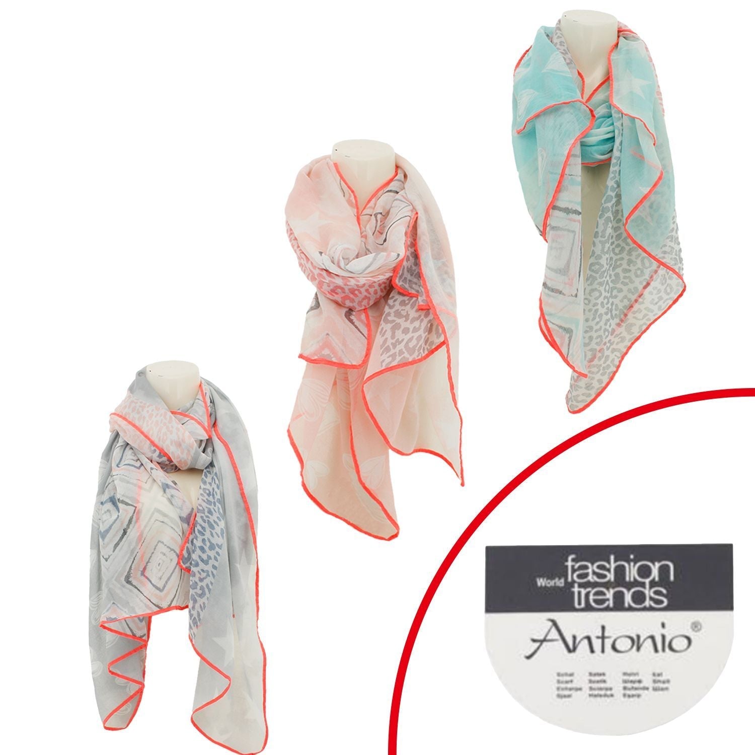 🌿 DESIGN: Auffällig und dennoch dezent – das Design lebt vom Zusammenspiel verschiedener Muster und einem farblich abgesetzten Neonrand. Dieser verleiht dem Schal einen frischen, modernen Look. Der Artikel ist in drei Farbkombinationen erhältlich: Grau mit Neonakzent, Rosa mit Neonakzent und Mint mit Neonakzent. Dadurch lässt sich für jeden Geschmack eine passende Variante finden.