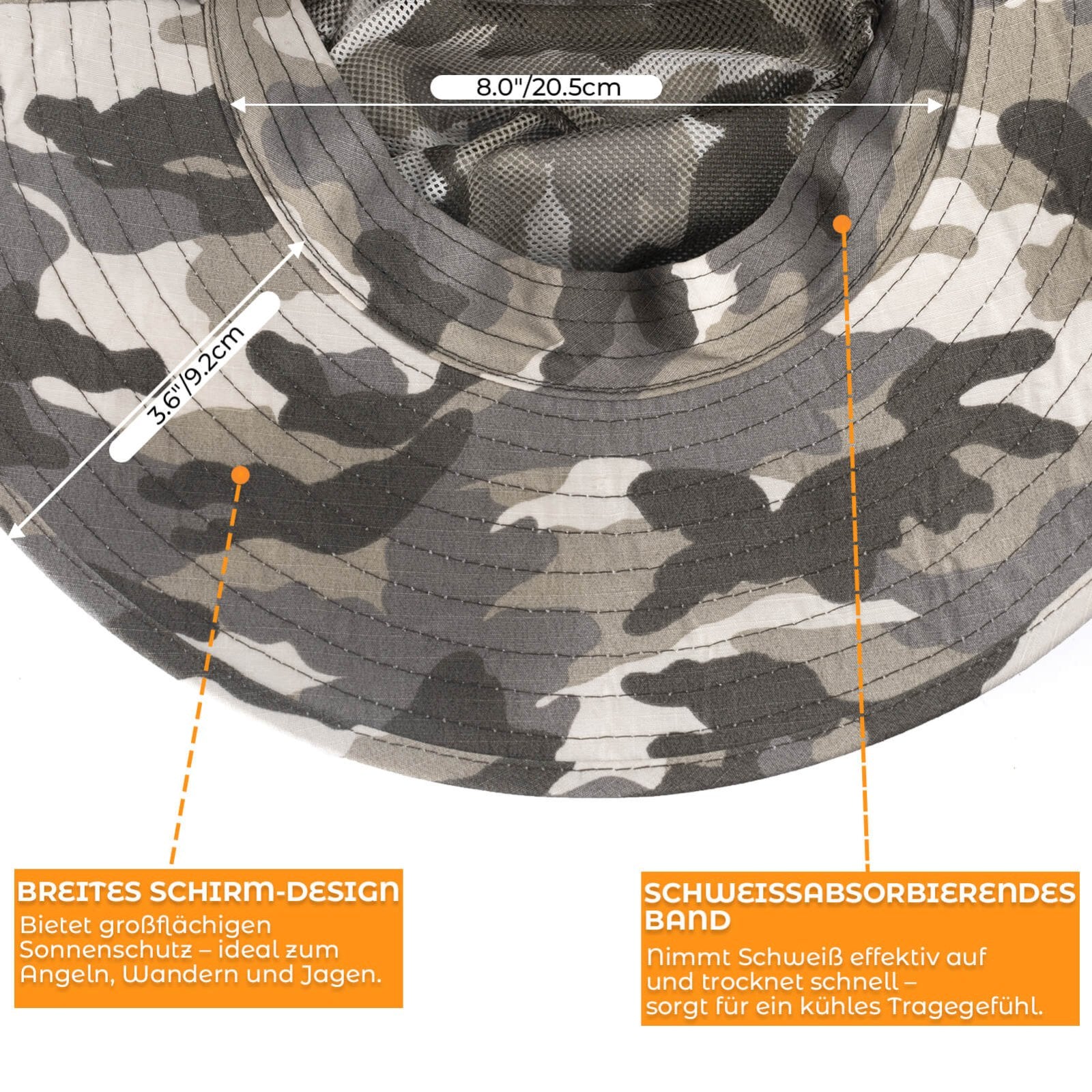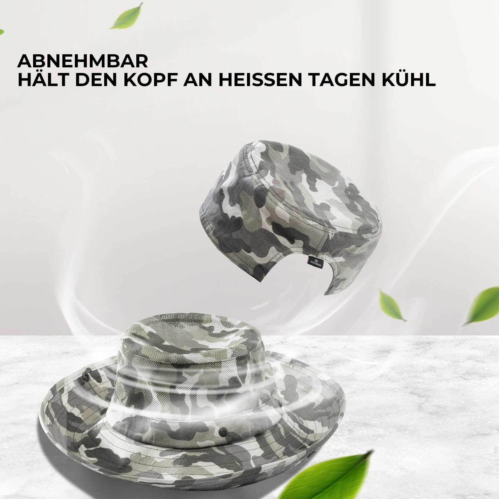 QUALITÄTSMATERIAL: Der zweilagige TC-Tarnstoff fühlt sich kühl an und blockiert zuverlässig UV-Strahlen. Mit nur 145 g ist der Hut besonders leicht und angenehm zu tragen.