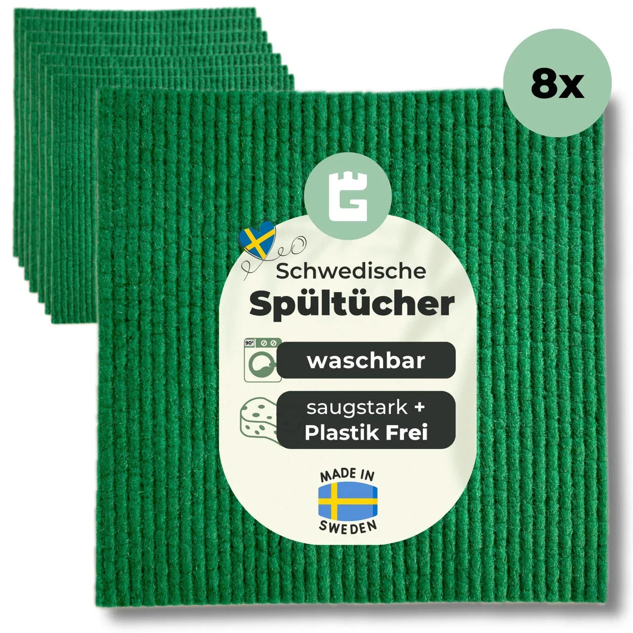 Unsere Spüllappen waschbar werden lokal in Schweden produziert und liebevoll von Hand bearbeitet. Was macht die Spültücher besonders? Extra saugfähiges Schwammtuch, Streifenfrei wischen, Waschbar, aus 30% Baumwolle