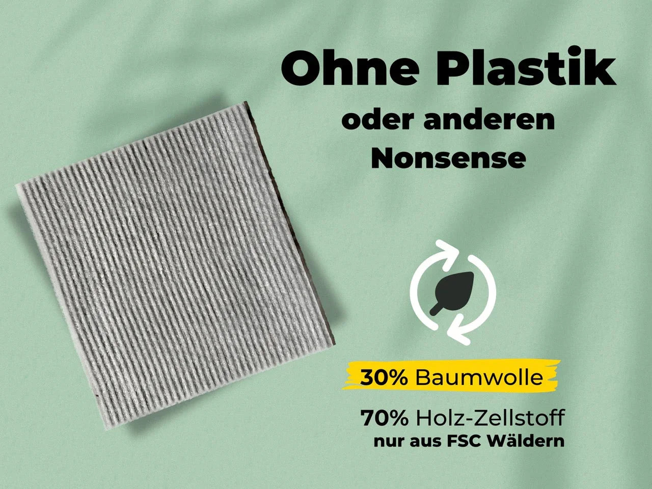 Geschirrlappen mit natürlichen Inhaltsstoffen, ganz ohne Weichmacher! Baumwolle Spültücher aus 30% Baumwolle & 70% Zellulose (nachhaltiger Holz-Zellstoff). Abwaschlappen Baumwolle kann nach Gebrauch im Bio Müll kompostiert werden
