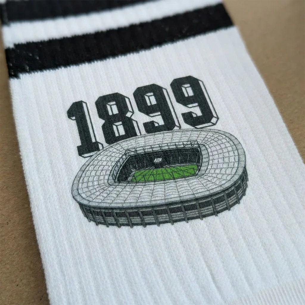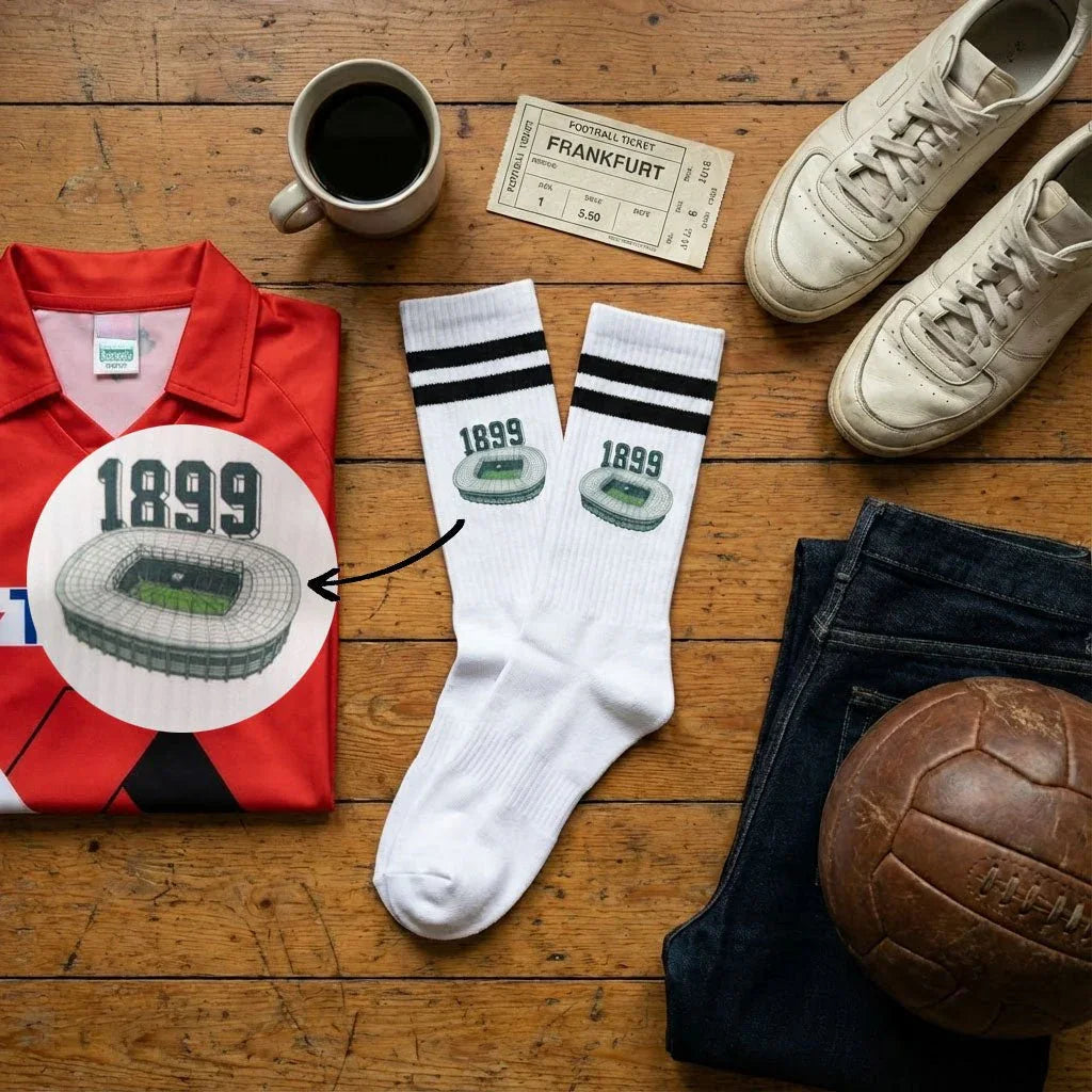 Unsere Stadionsocken Frankfurt zeichnen sich durch einen hochwertigen und detaillierten Druck aus. Sie haben eine verstärkte Laufsohle, sind superweich und... Lesen Sie mehr