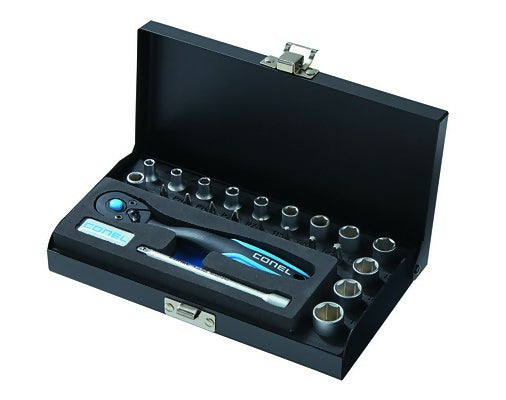 Der CONEL Steckschlüssel-Satz 1/4" 23-teilig (4–13 mm) mit PH/PZ 1–2 und T15–30 ist ein hochwertiges, vielseitiges Werkzeugset für Handwerker, Monteure und Heimwerker.