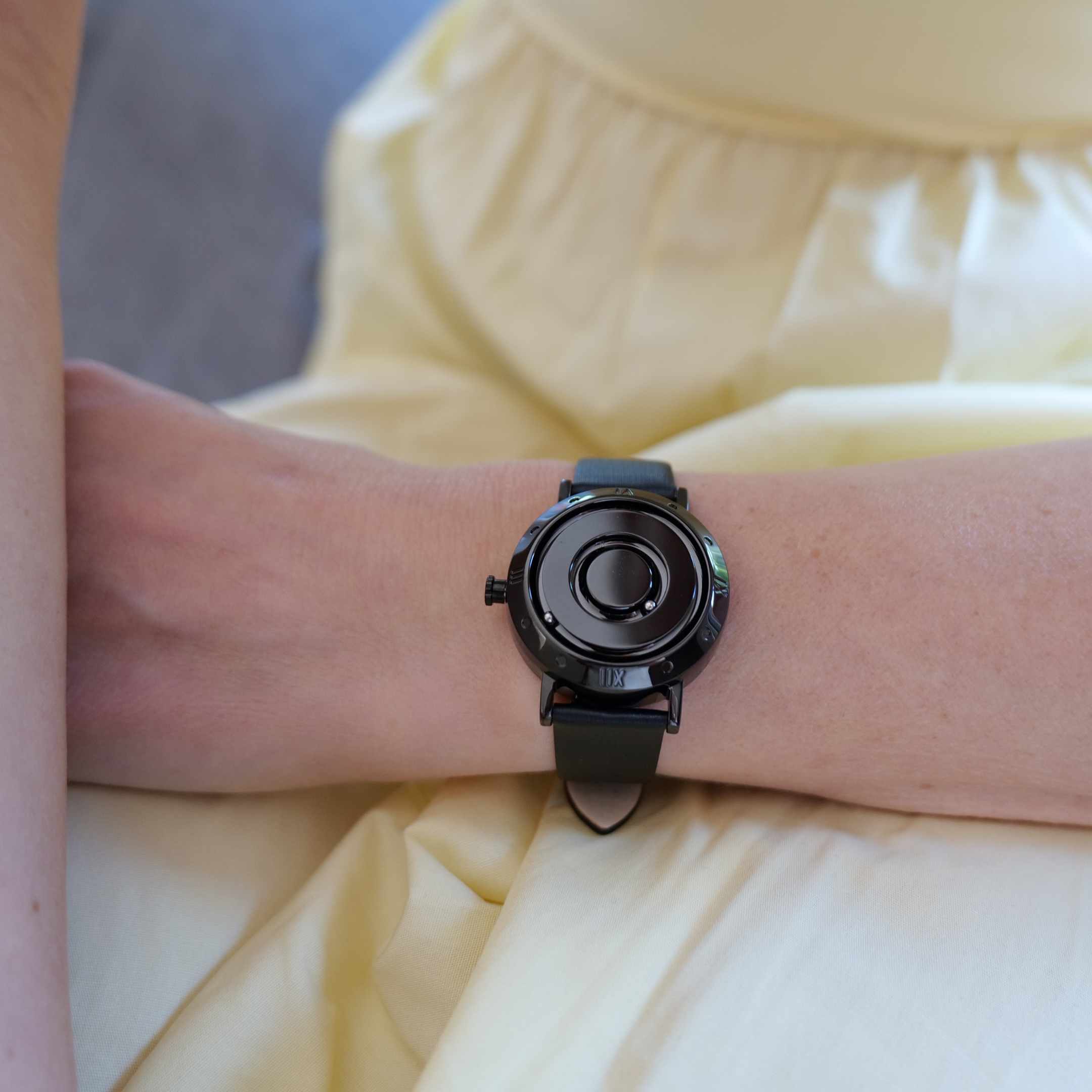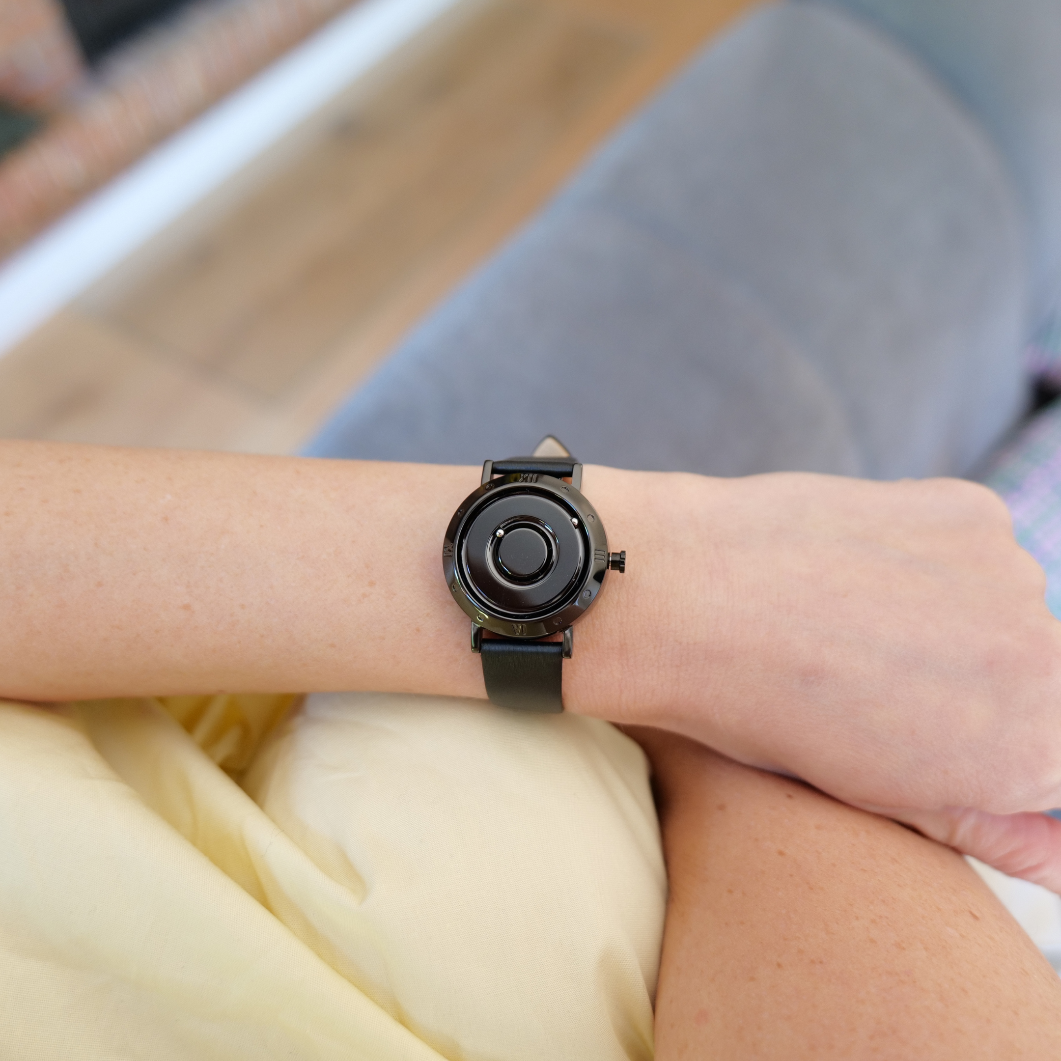 Mit ihrem tiefschwarzen, spiegelnden Zifferblatt verkörpert die Stella Black stilvolle Zurückhaltung und moderne Raffinesse. Das schwarz glänzende Gehäuse aus hochwertiger Alloy unterstreicht den eleganten Look und verleiht der Uhr eine besondere Ausdrucksstärke. Abgerundet wird das Design durch ein passendes schwarzes Satin-Lederarmband, das angenehm weich auf der Haut liegt und sich dezent in jedes Outfit einfügt.