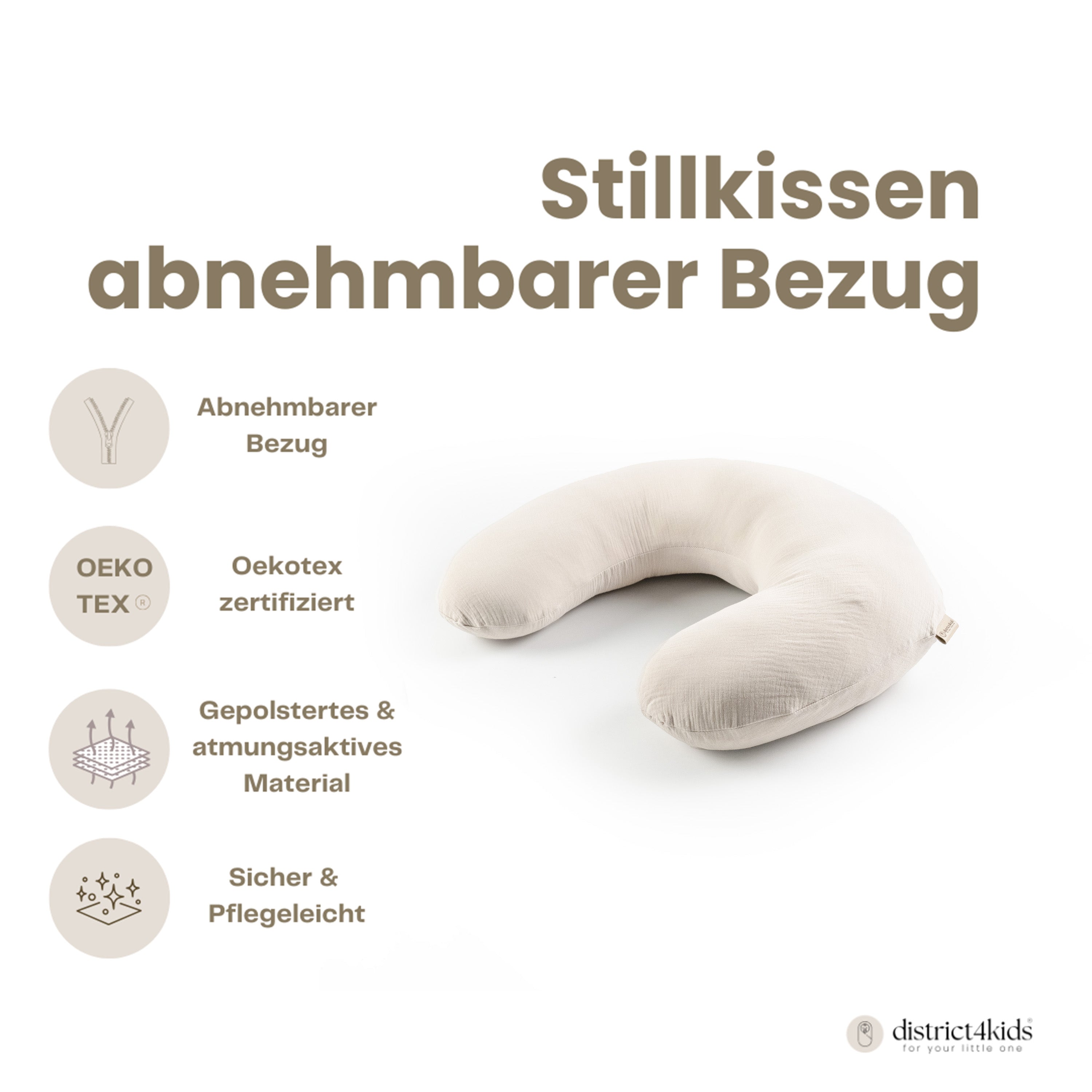Die Halbmond-Form passt sich perfekt deinem Körper an und sorgt für eine entspannte Haltung, egal ob im Sitzen oder Liegen. Auch wenn dein Baby beginnt, sich aufzurichten oder zu sitzen, ist das Kissen eine wertvolle Hilfe im Alltag. Gleichzeitig fügt sich das zeitlos schöne Musselin-Design stilvoll in jedes Zuhause ein.