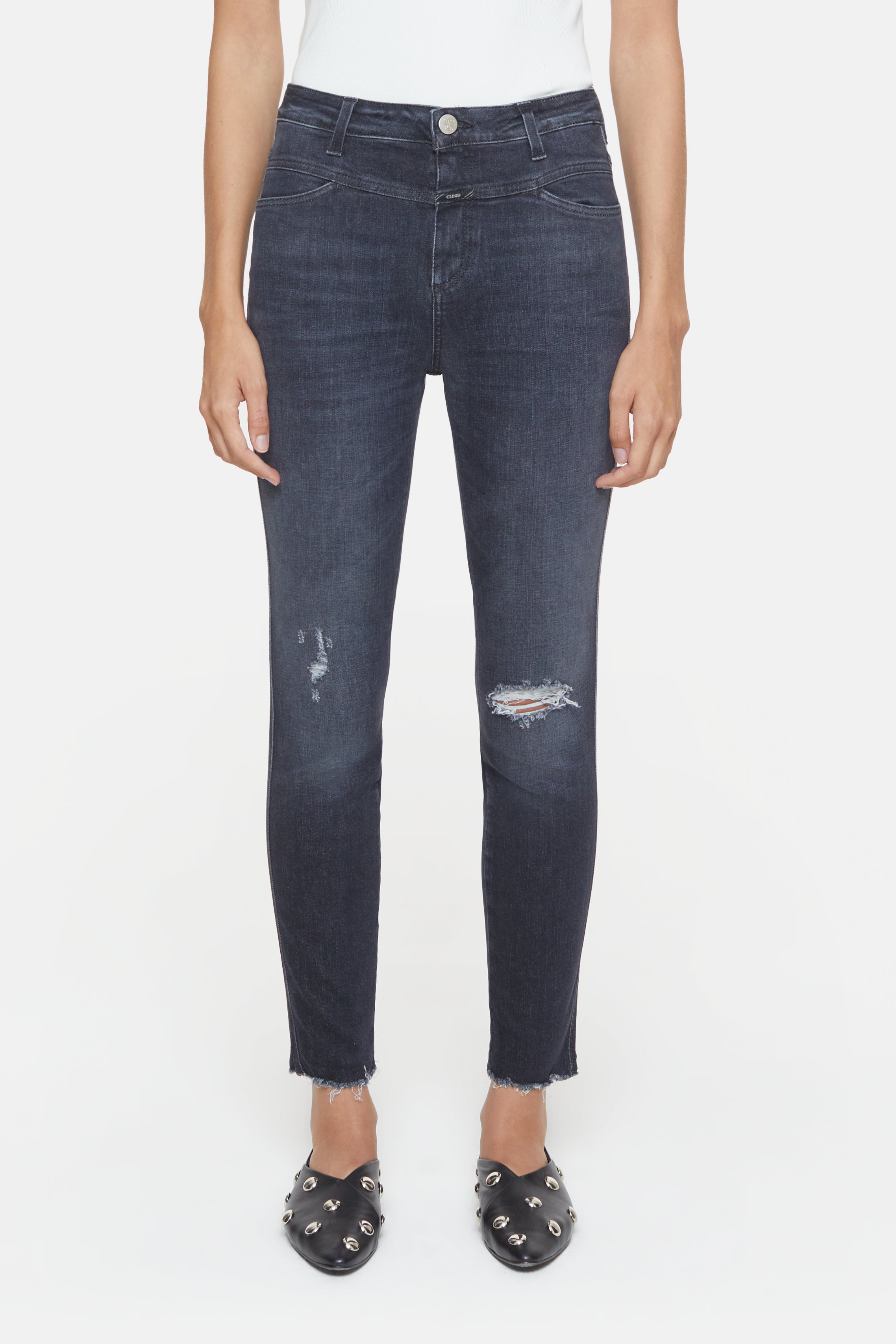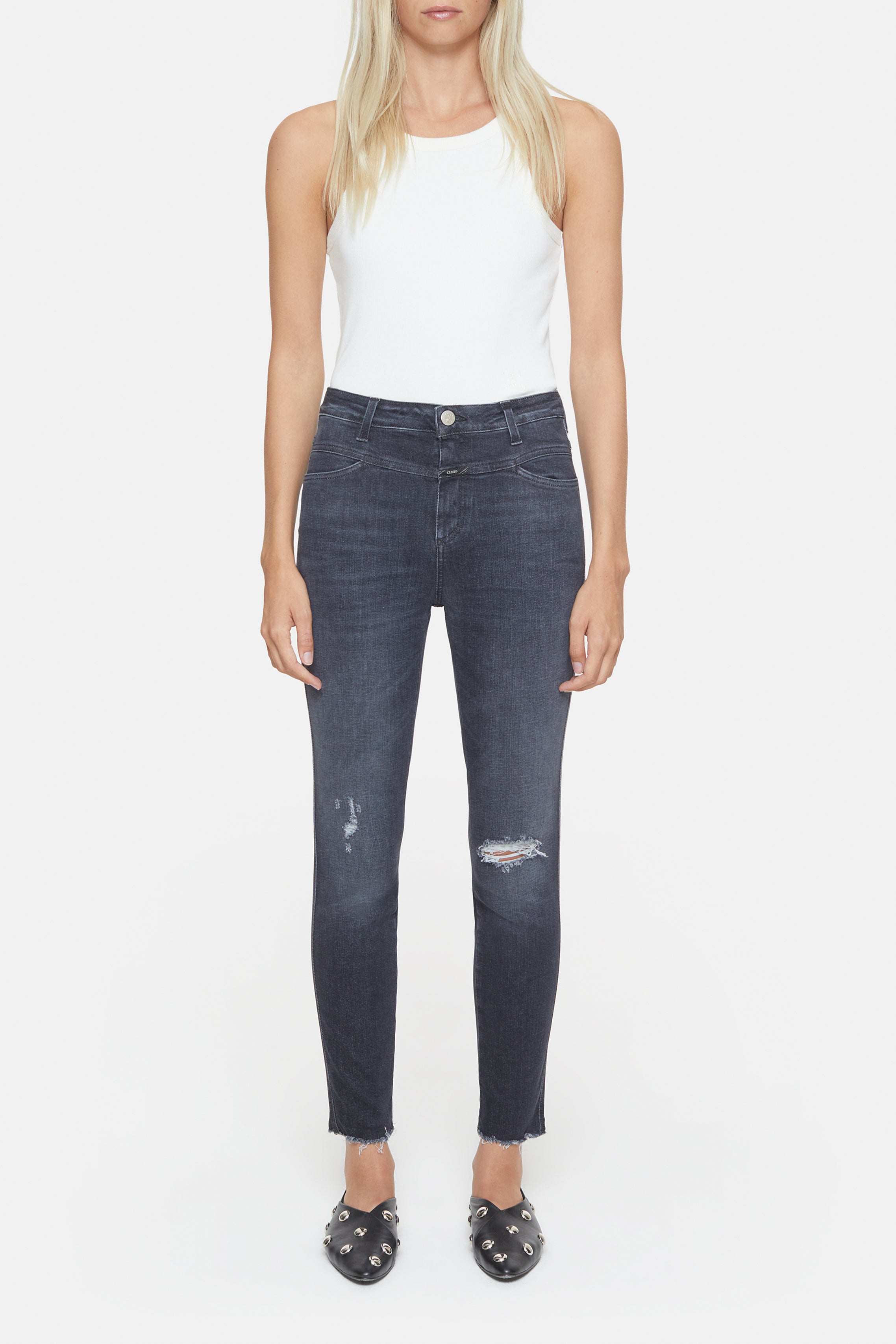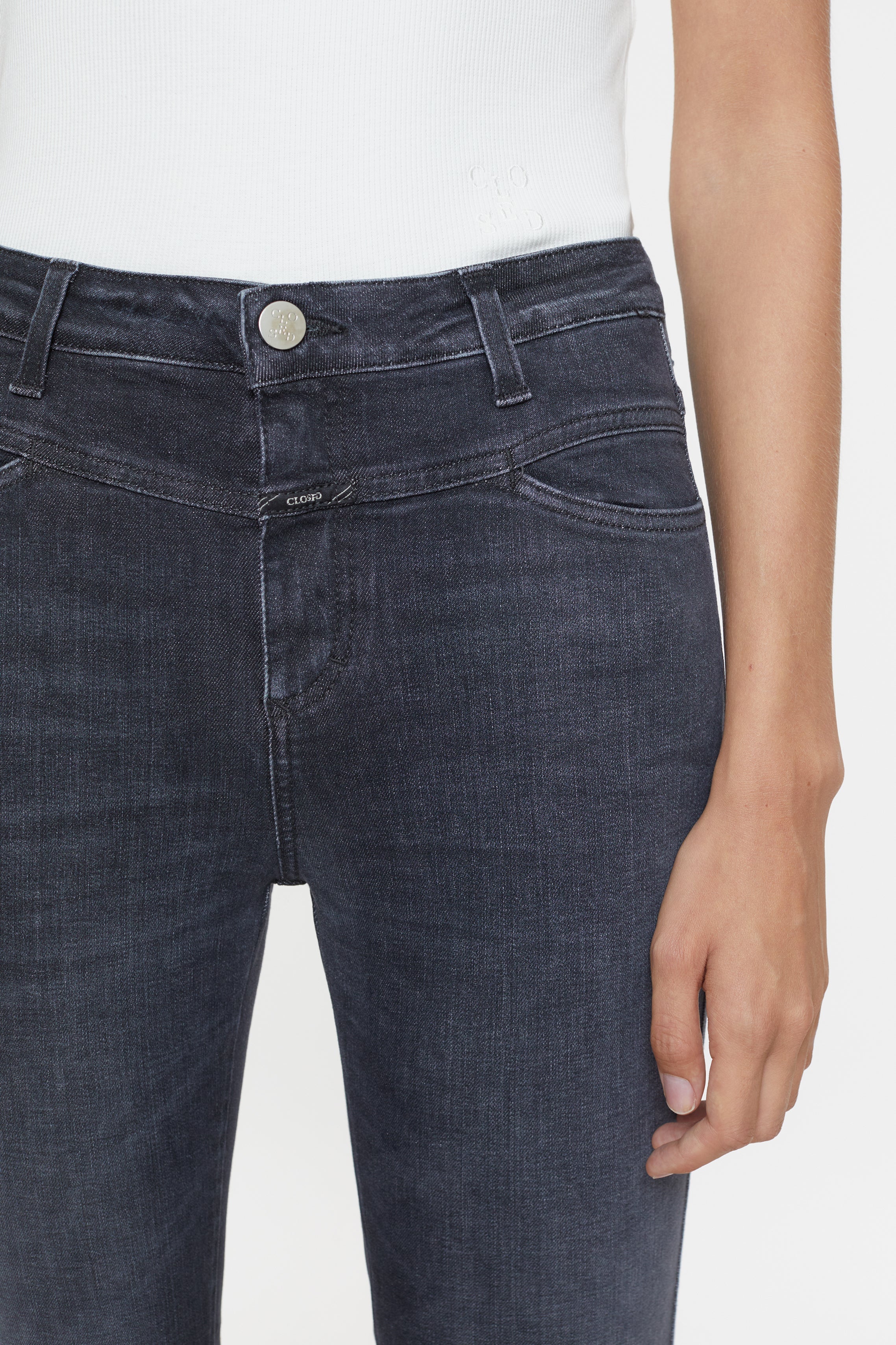 Skinny Pusher Jeans + X-Pocket-Style mit schmaler Passform + Hoher Bund + Schmal zulaufendes Bein + Aus der Eco-Denim-Linie A... Lesen Sie mehr