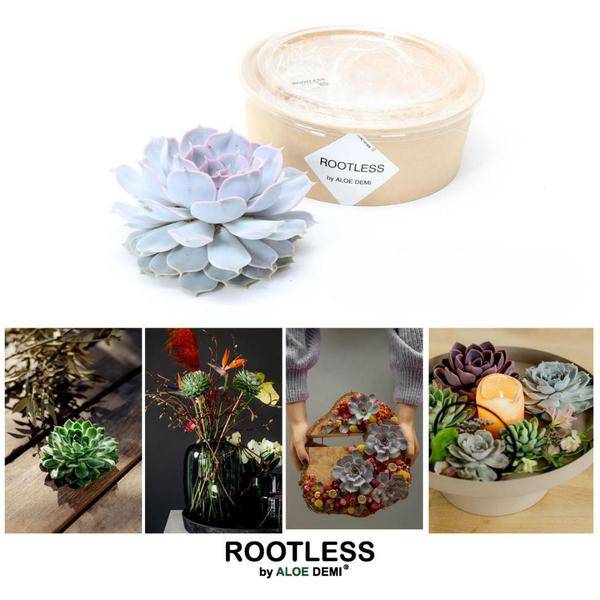 ROOTLESS-Sukkulenten werden zunächst in Kulturtöpfen aufgezogen und bei idealer Größe als Rosetten geschnitten. Sie sind auch bekannt als Schnitt-Sukkulenten, Schnittfettpflanzen oder Schnitt-Echeverias und gelten als wahre Überlebenskünstler.