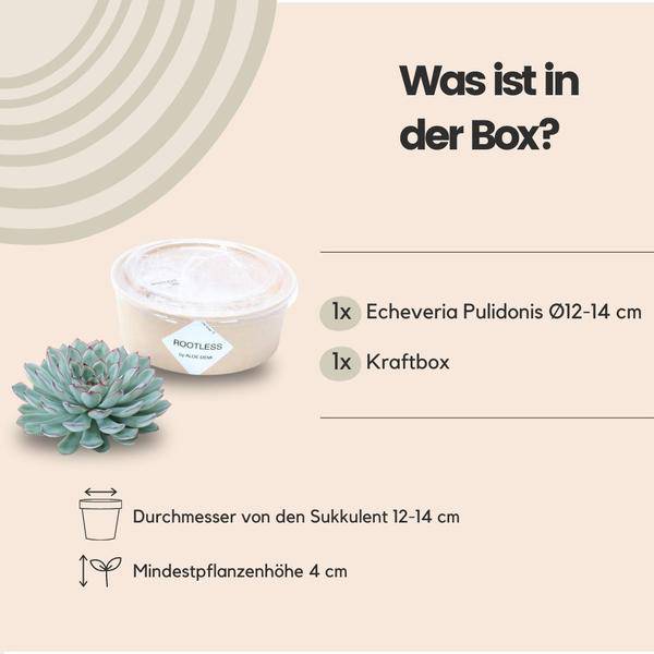 🌵 Besondere ROOTLESS-Sukkulente: Echeveria pulidonis wird als kräftige Rosette ohne Wurzeln geliefert – bleibt monatelang frisch ganz ohne Gießen.