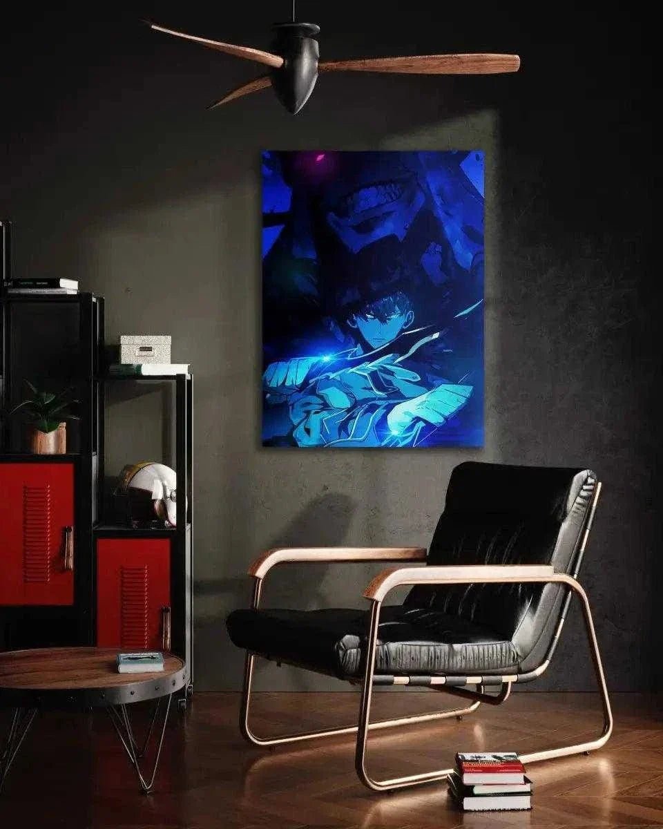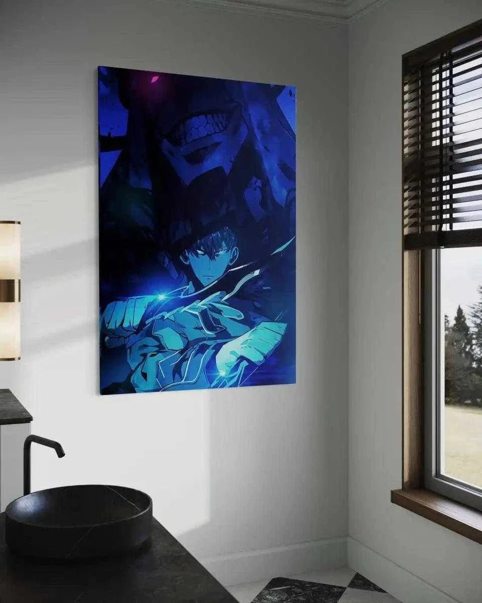 Titel: Sung Jinwoo Blue - Solo Leveling - Anime Leinwandbild