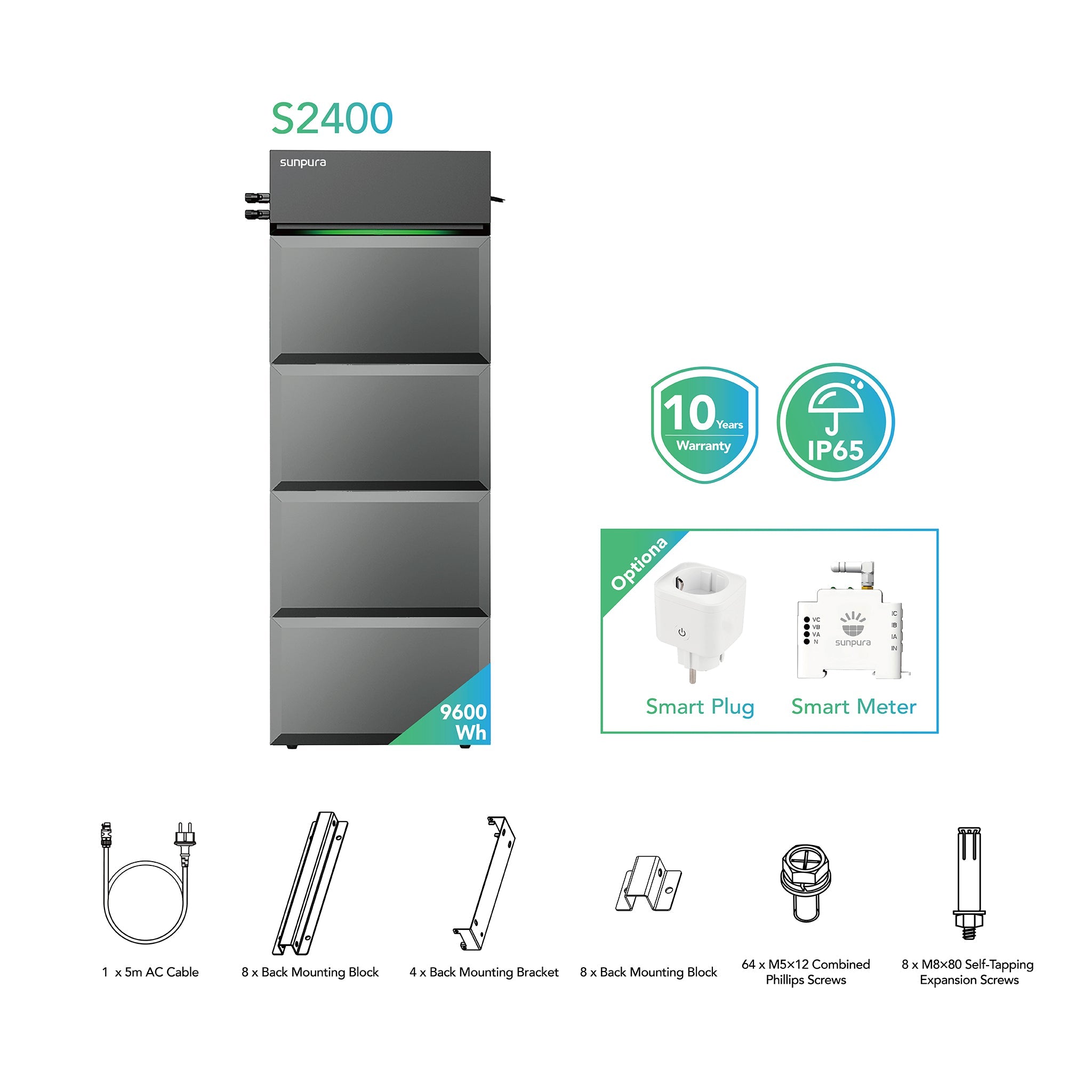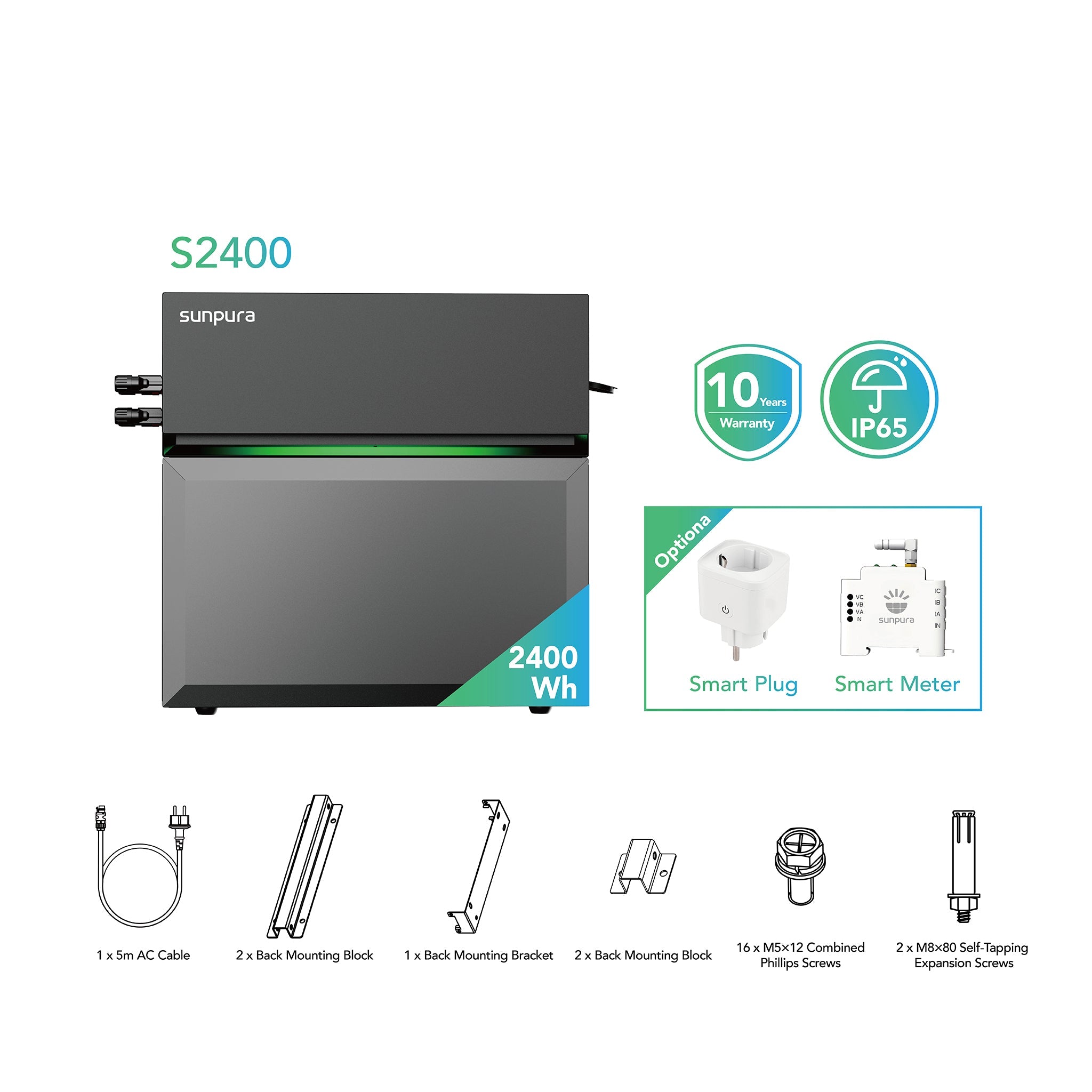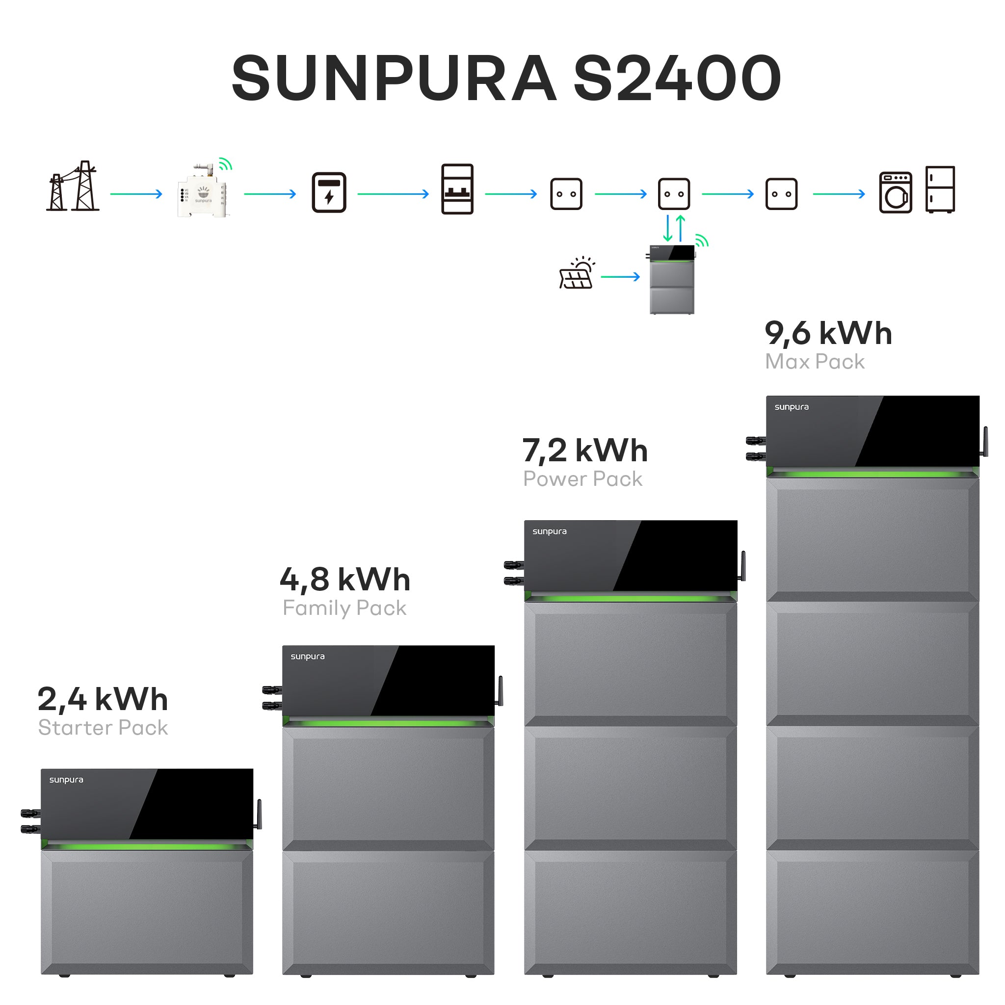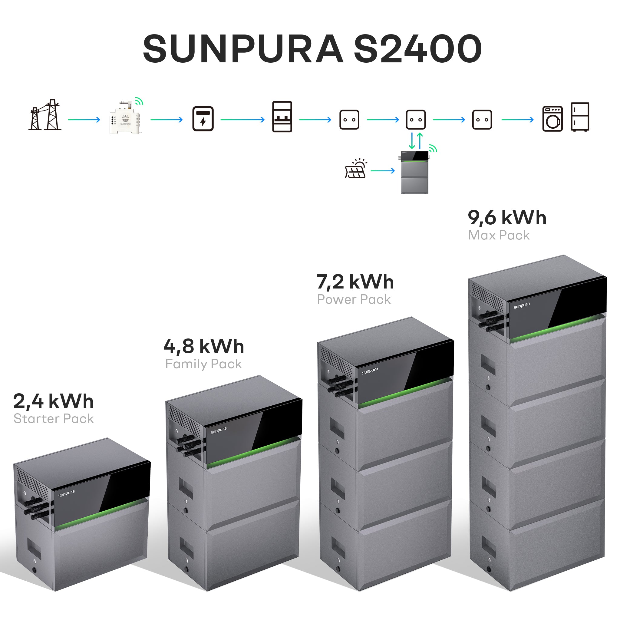 Sunpura S2400 - Hybrid Stromspeicher, AI-HEMS, stapelbar, dynamischer Strompreis, DC & AC gekoppelt