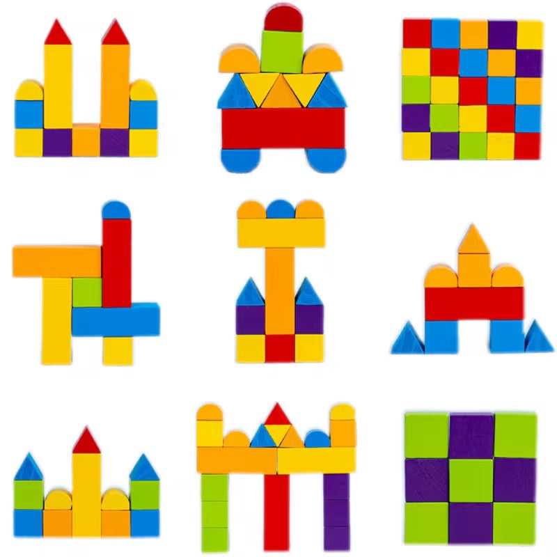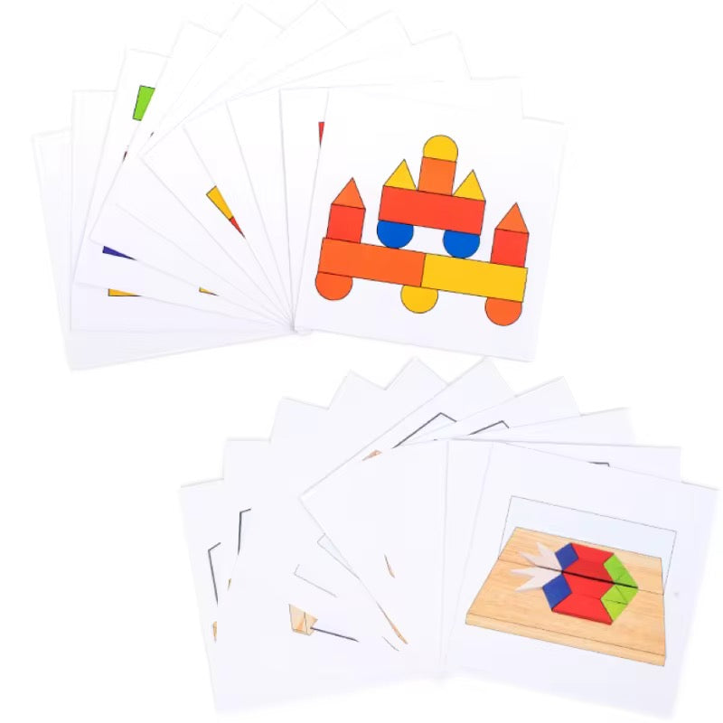 Symmetrie Spiel aus Holz mit Spiegel - mit flachen Bausteinen & Karten