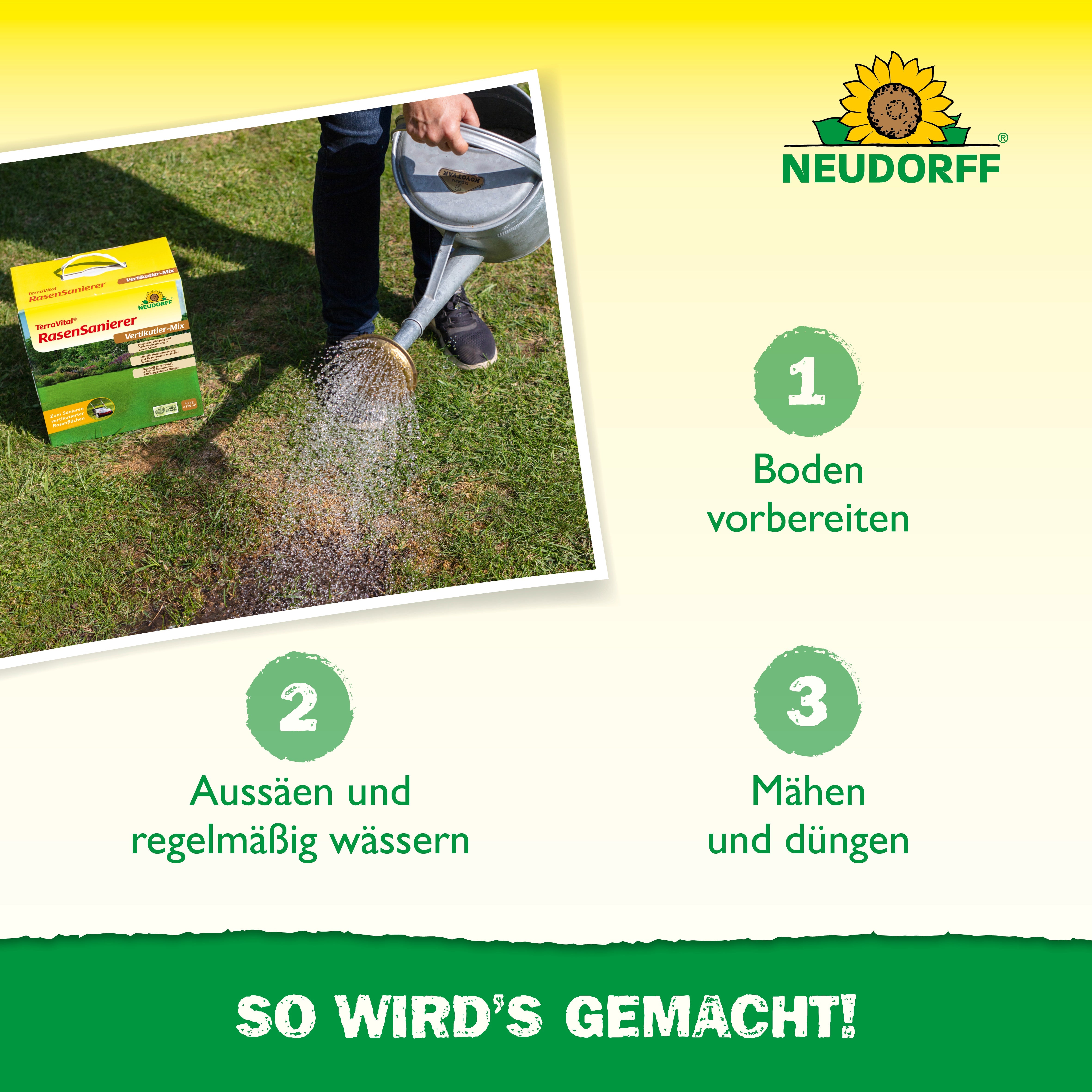 Nach dem Vertikutieren zeigen sich große kahle Stellen im Rasen? Dann sanieren Sie den grünen Teppich schnell und nachhaltig. Lesen Sie mehr