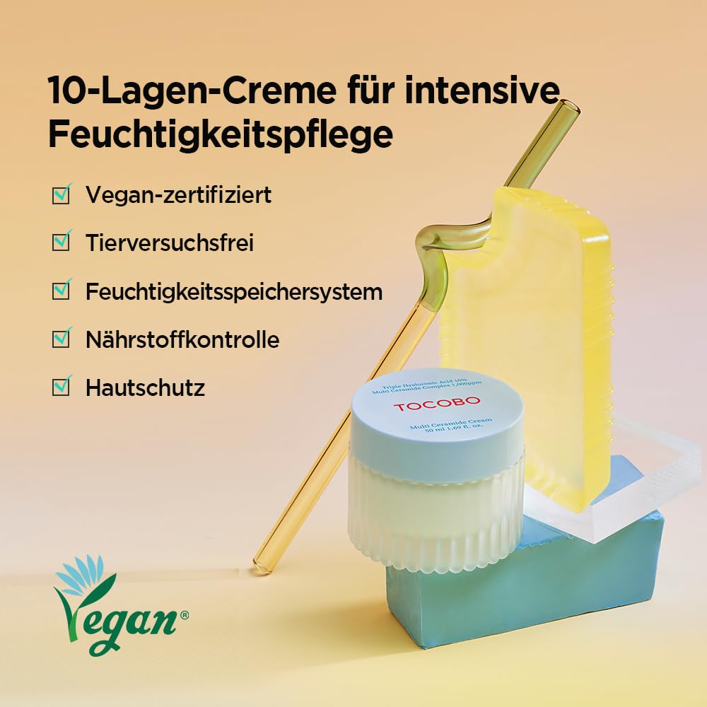 Die TOCOBO Multi Ceramide Cream 50ml wurde entwickelt, um trockene und empfindliche Haut tiefenwirksam zu pflegen. Durch die Kombination aus hochkonzentrierter Hyaluronsäure und mehreren Ceramiden wird deine Haut nicht nur intensiv hydratisiert, sondern auch spürbar gestärkt und geschützt. Die leichte Textur zieht schnell ein, ohne Rückstände zu hinterlassen – perfekt für jeden Tag.