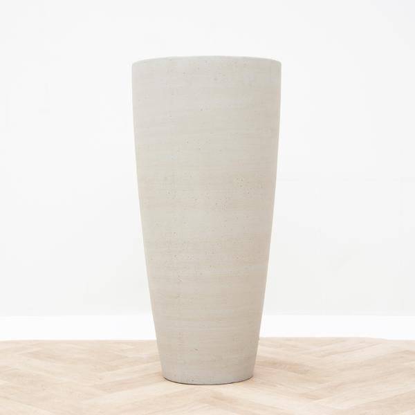 Durch die schmale, hohe Form lässt sich der Dax-Topf platzsparend aufstellen – z. B. neben Türen, in Fluren oder in Empfangsbereichen. Die gewaschene Beige-Färbung verleiht ihm eine natürliche und zugleich edle Anmutung, die sich in verschiedenste Einrichtungskonzepte integriert.