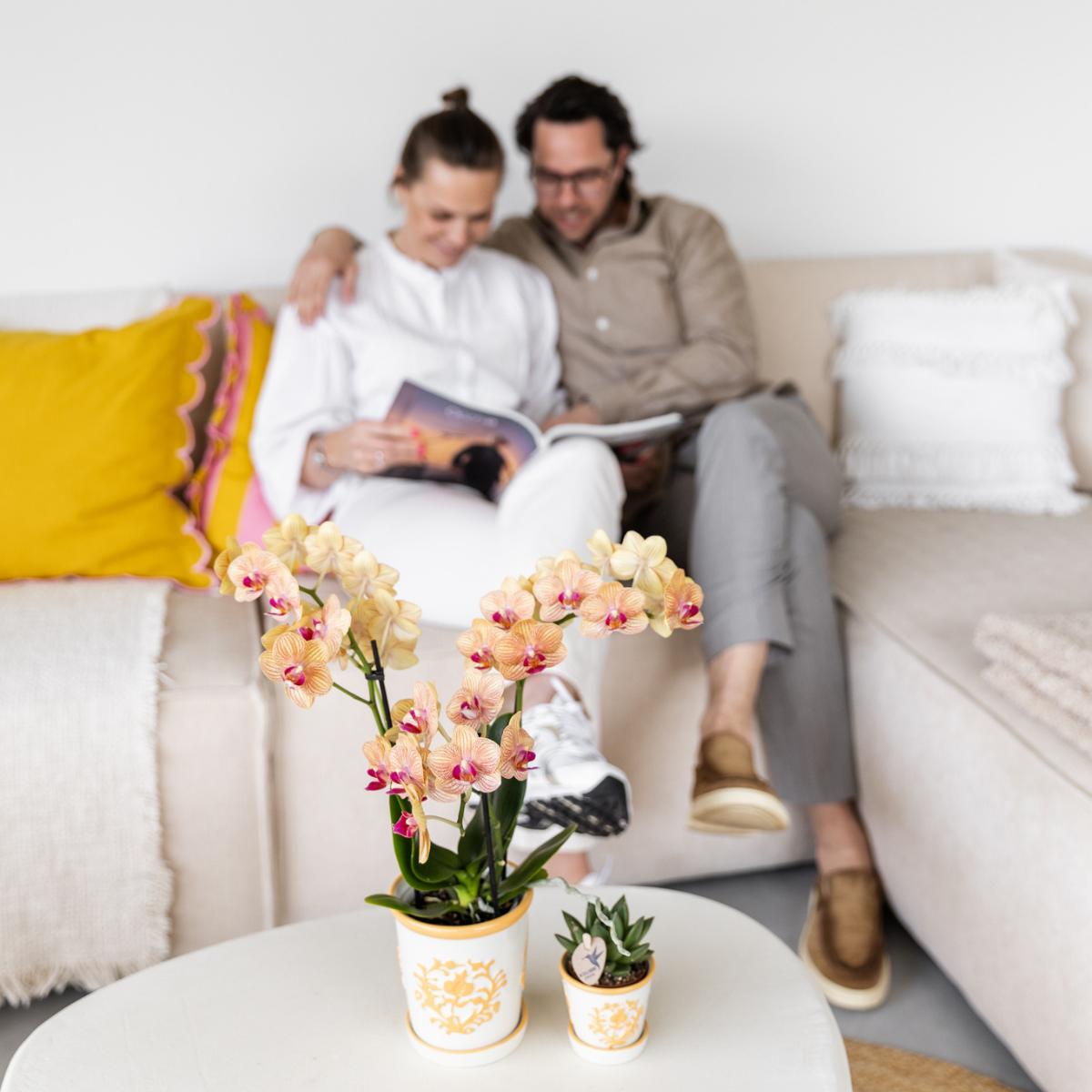Bringen Sie mit dem Topf Malaga Light Orange Ø9cm sommerliche Fröhlichkeit in Ihre Wohnräume. Inspiriert vom sonnigen Süden überzeugt dieser dekorative Übertopf mit einem leuchtenden Orange-Ton und einem filigranen Druck, der an handgefertigtes Porzellan erinnert. Der Topf verleiht Ihrem Interieur eine warme und einladende Atmosphäre.