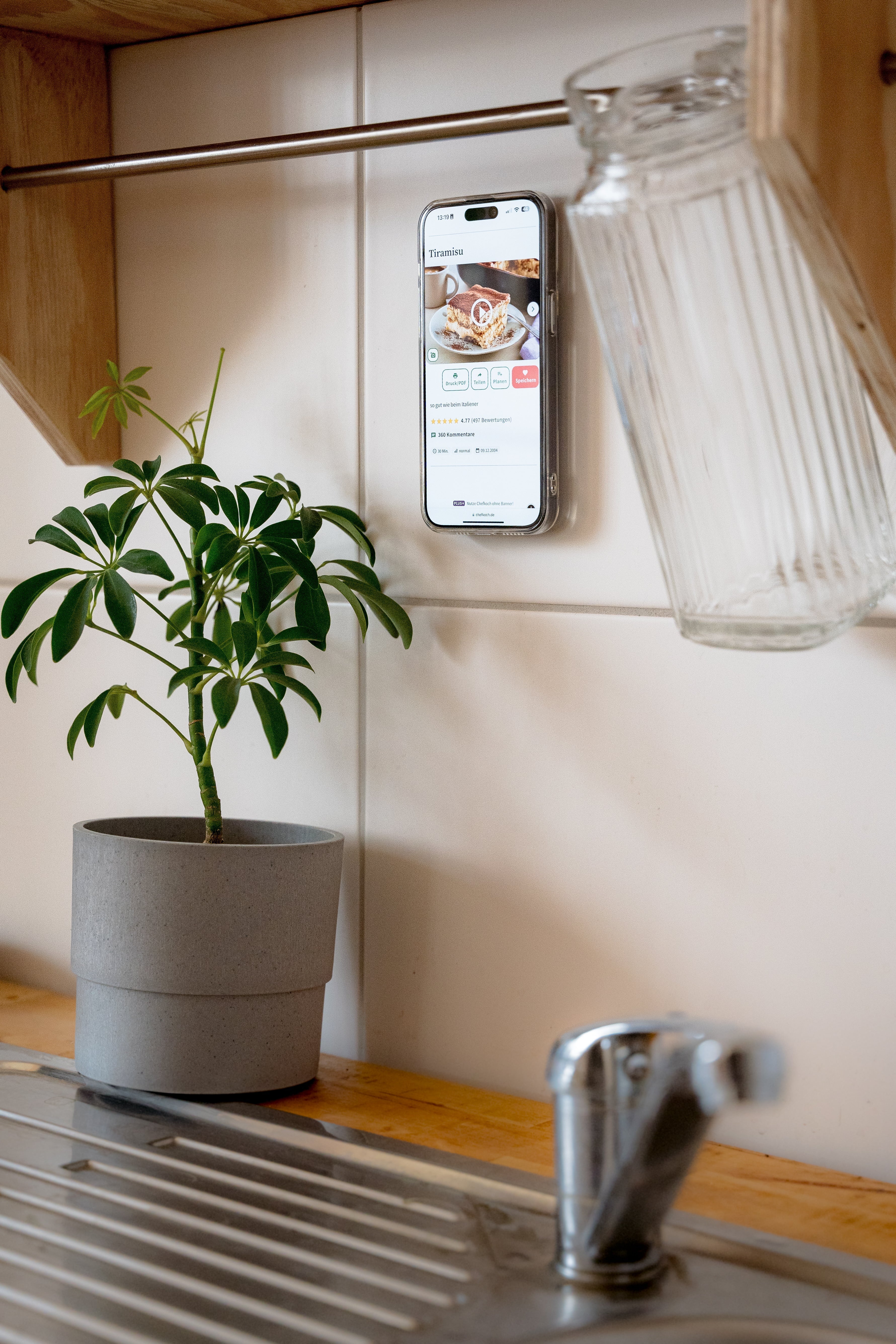 Mit dem FESCHD Überall Mount befestigst du dein Handy blitzschnell an jeder ebenen Oberfläche – perfekt für Küche, Bad, Büro oder einfach überall.