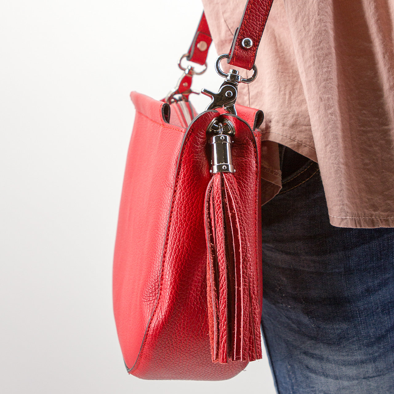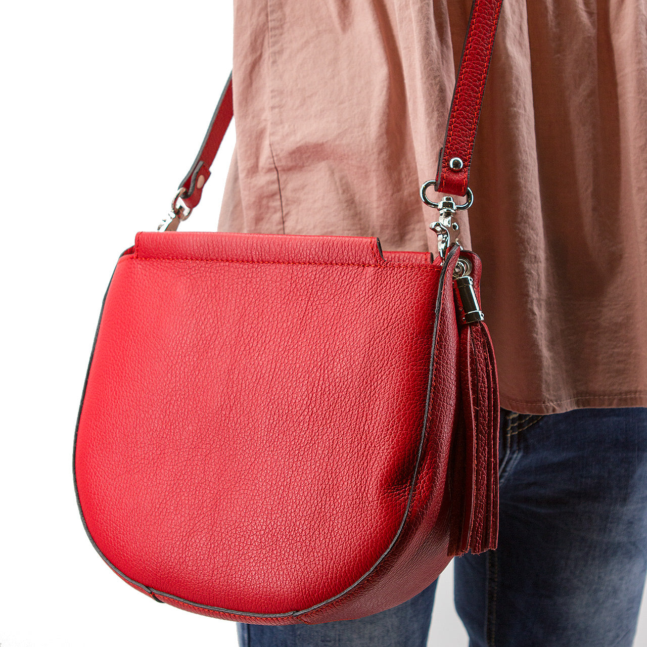 Modische Leder Tasche in D Form mit Quaste. Optional mit Blüten / Blumen Ledertragegurt - Siehe dazu die Bundle Angebote... Lesen Sie mehr