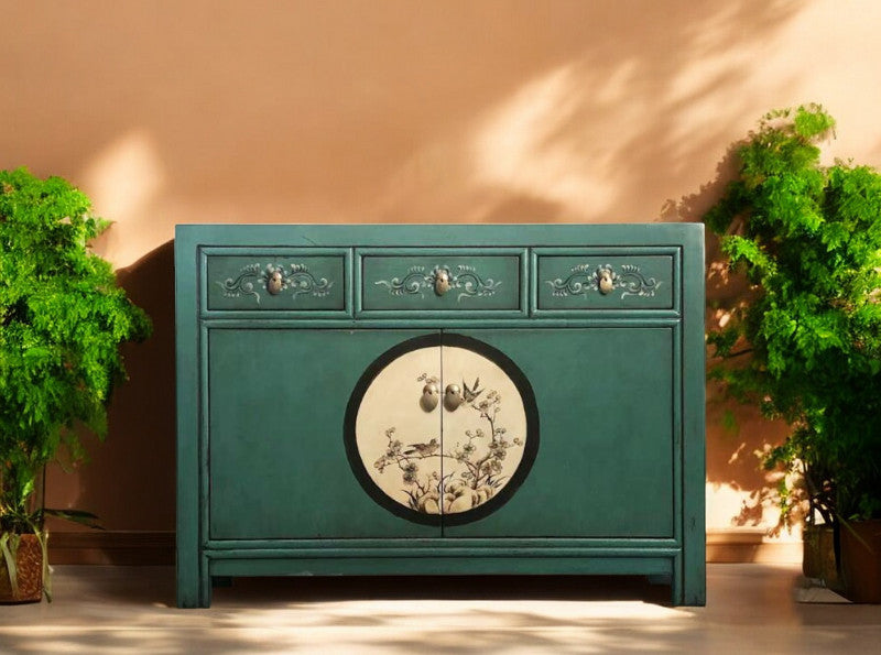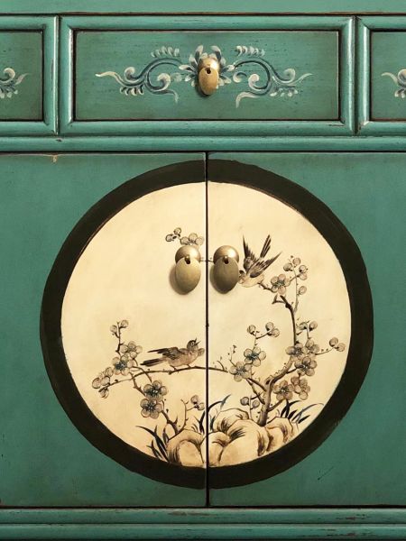 Chinesische Kommode in exotischem Grün aus unserer Produktlinie "Aurora". Neben der Farbkomposition beeindrucken vor allem die kunstvollen Verzierungen sowie der... Lesen Sie mehr