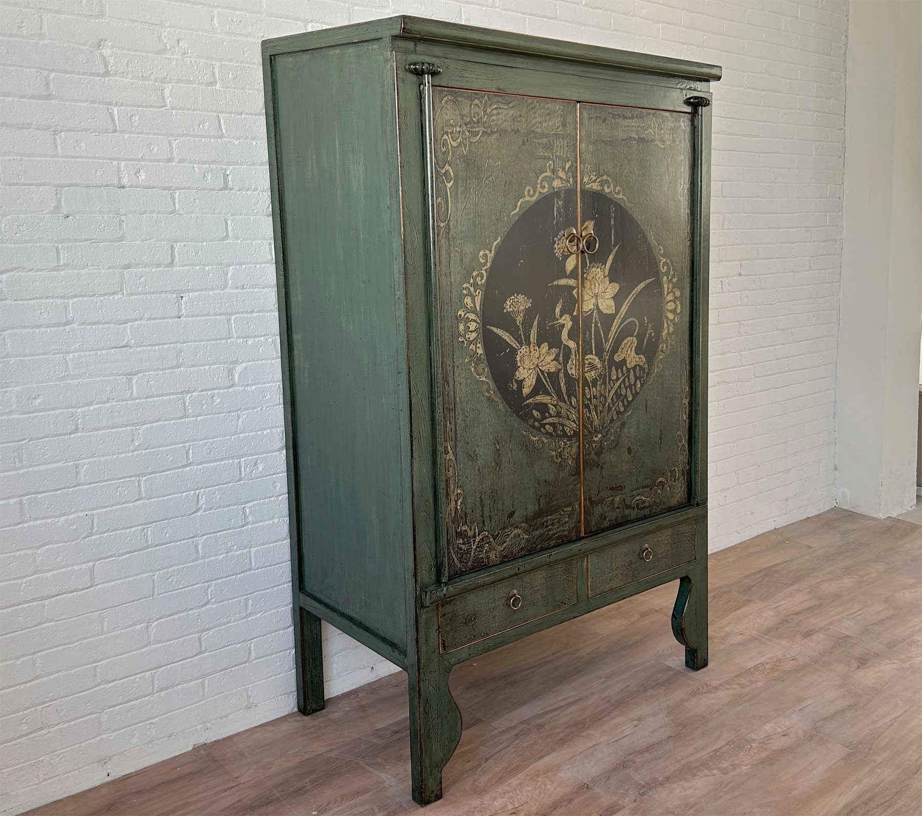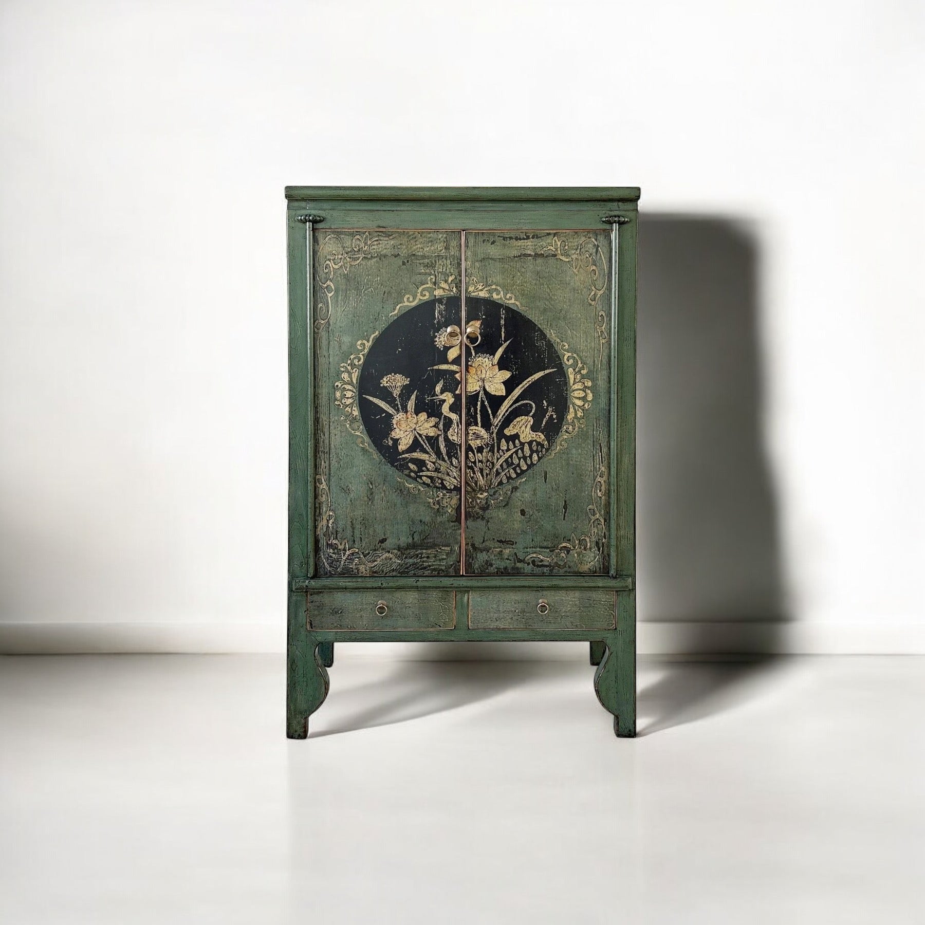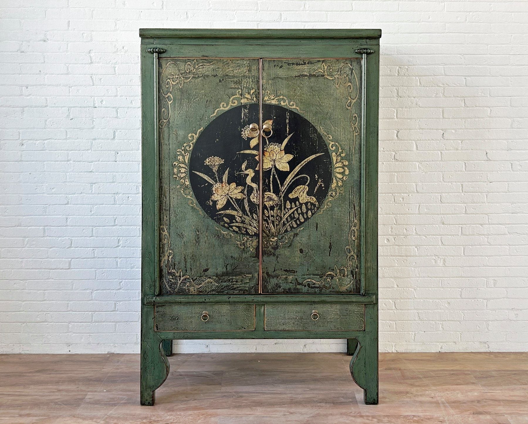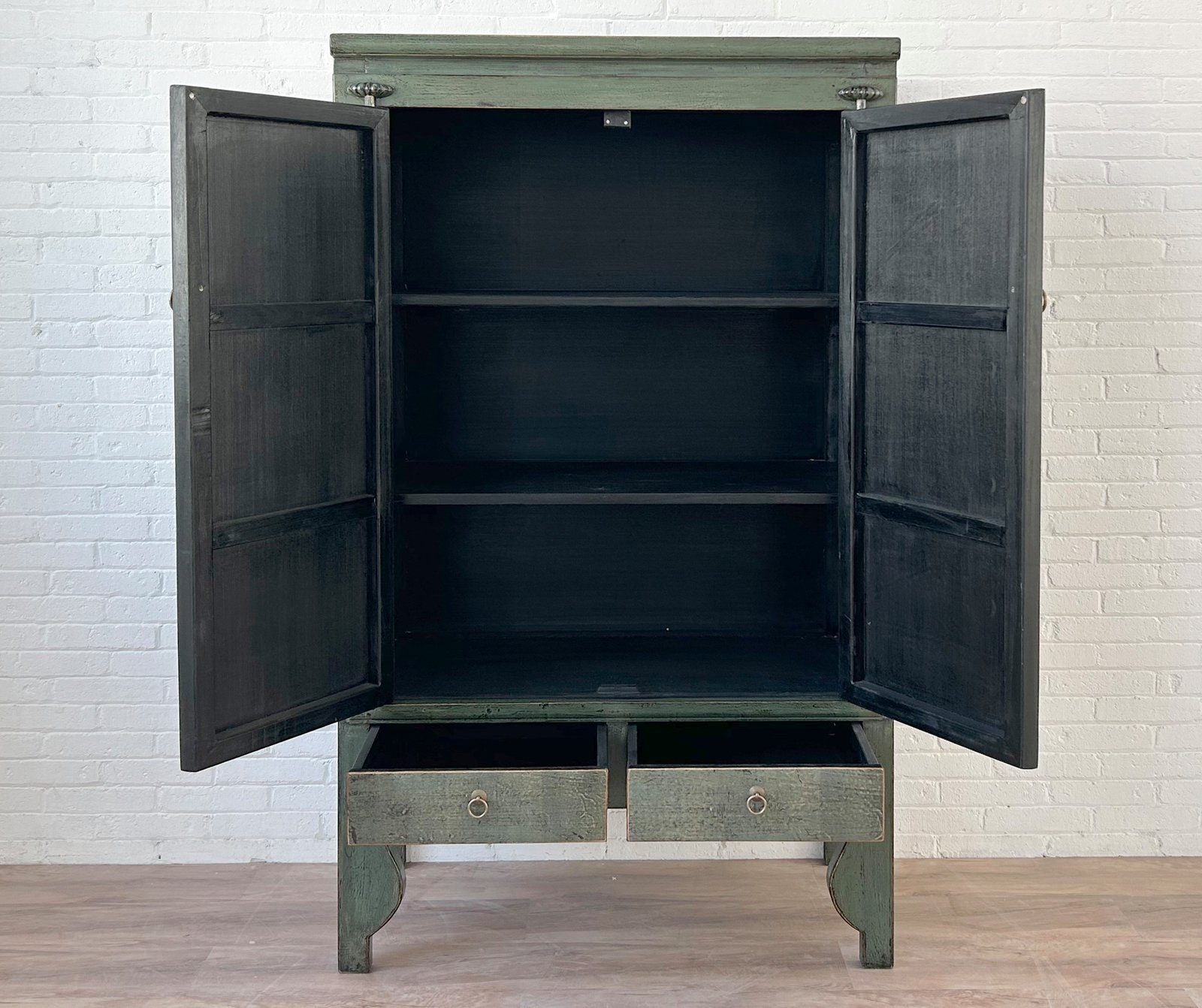 Vintage Asia Chinesischer Schrank Hochzeitsschrank Kommode Tannengrün - Art. A600-2