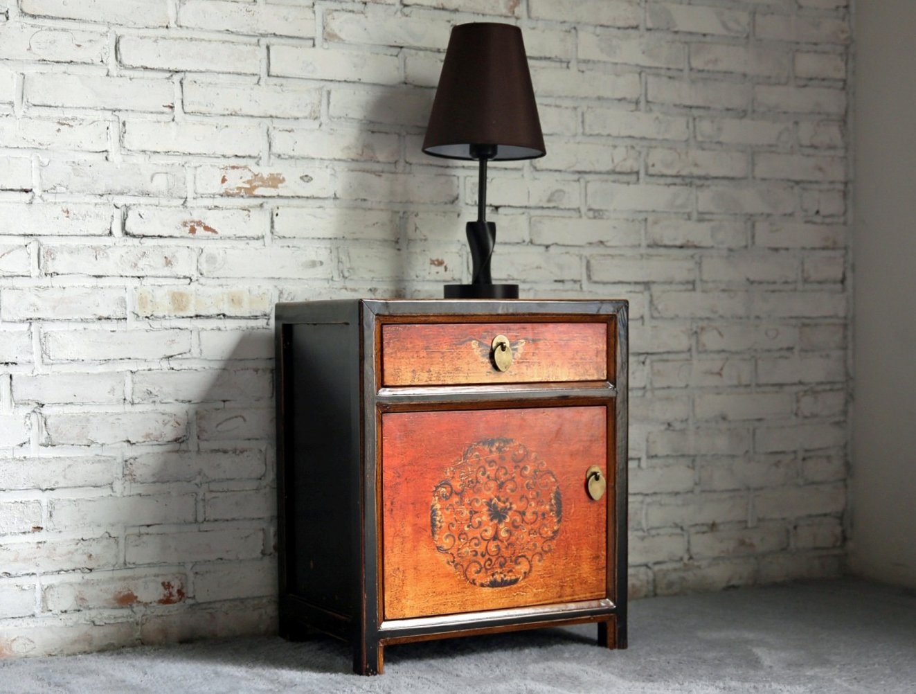 Vintage Asia Chinesisches Nachtkästchen Nachttisch "Fire" - Art. 35191-2