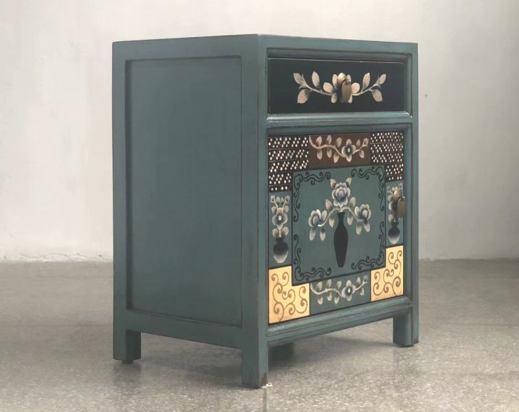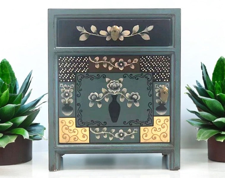 Vintage Asia Chinesisches Nachtkästchen Nachttisch "Oceanflowers" - Art. 35191-6