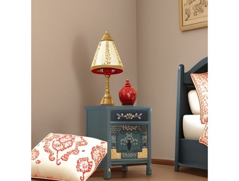 Hübscher chinesischer Nachttisch in lebhaftem Blau aus unserer Produktreihe "Oceanflowers". Das Kästchen ist mit floralen Mustern und Ornamenten verziert. Diese... Lesen Sie mehr