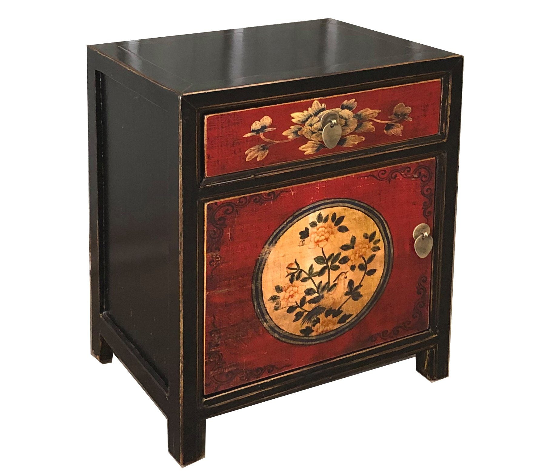 Vintage Asia Chinesisches Nachtkästchen Nachttisch "RedMagic" - Art. 35191-9