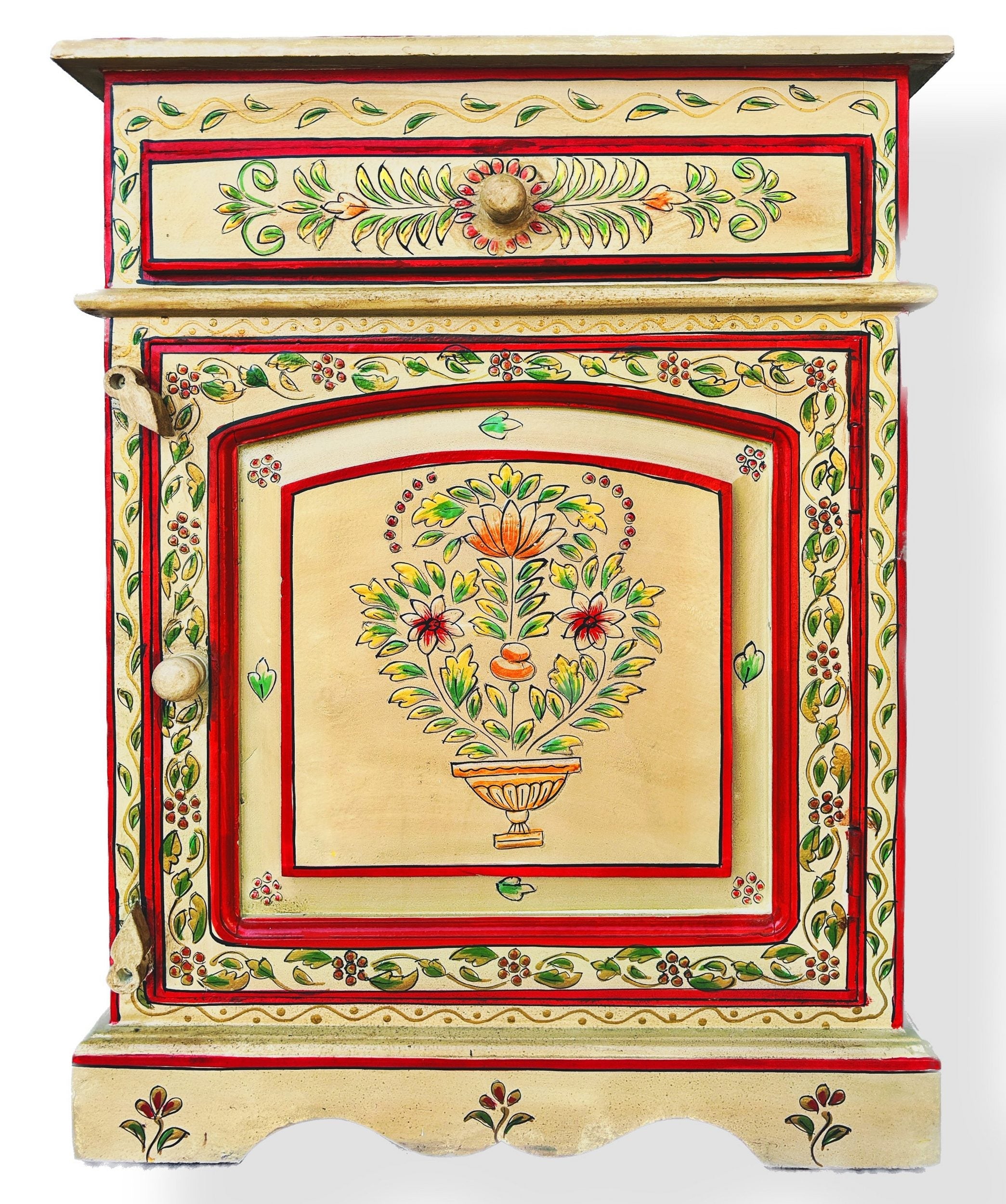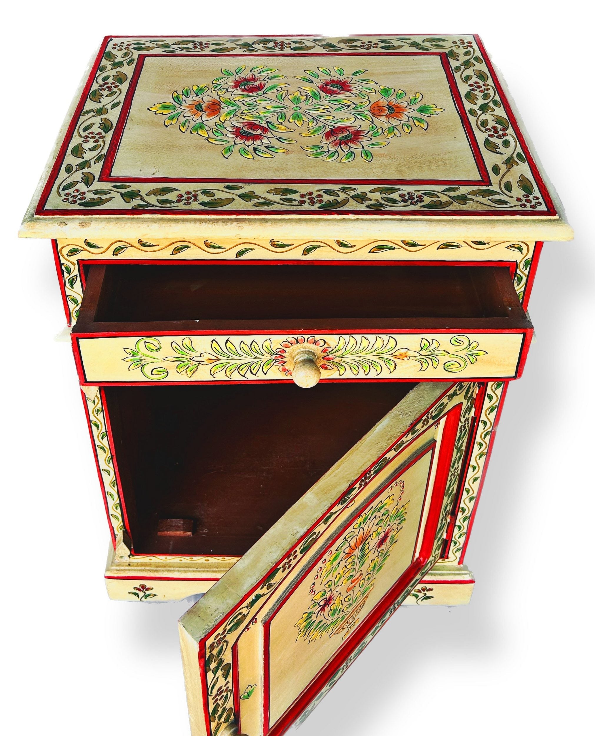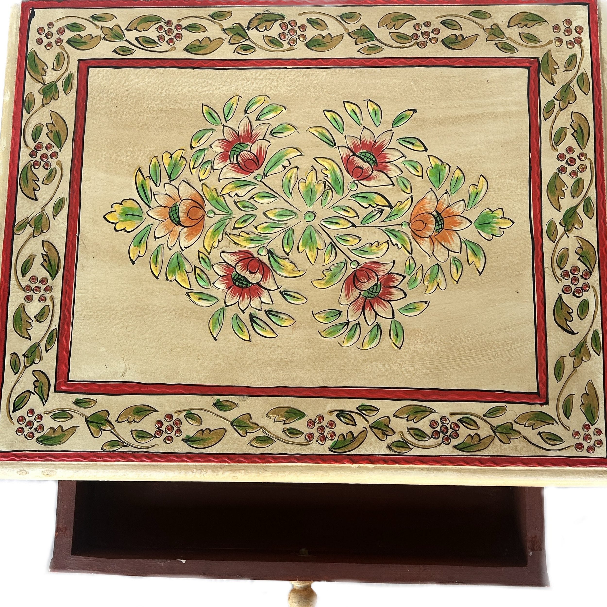 Vintage Asia Handbemaltes Indisches Kästchen Nachttisch - Art. Chest_IRF