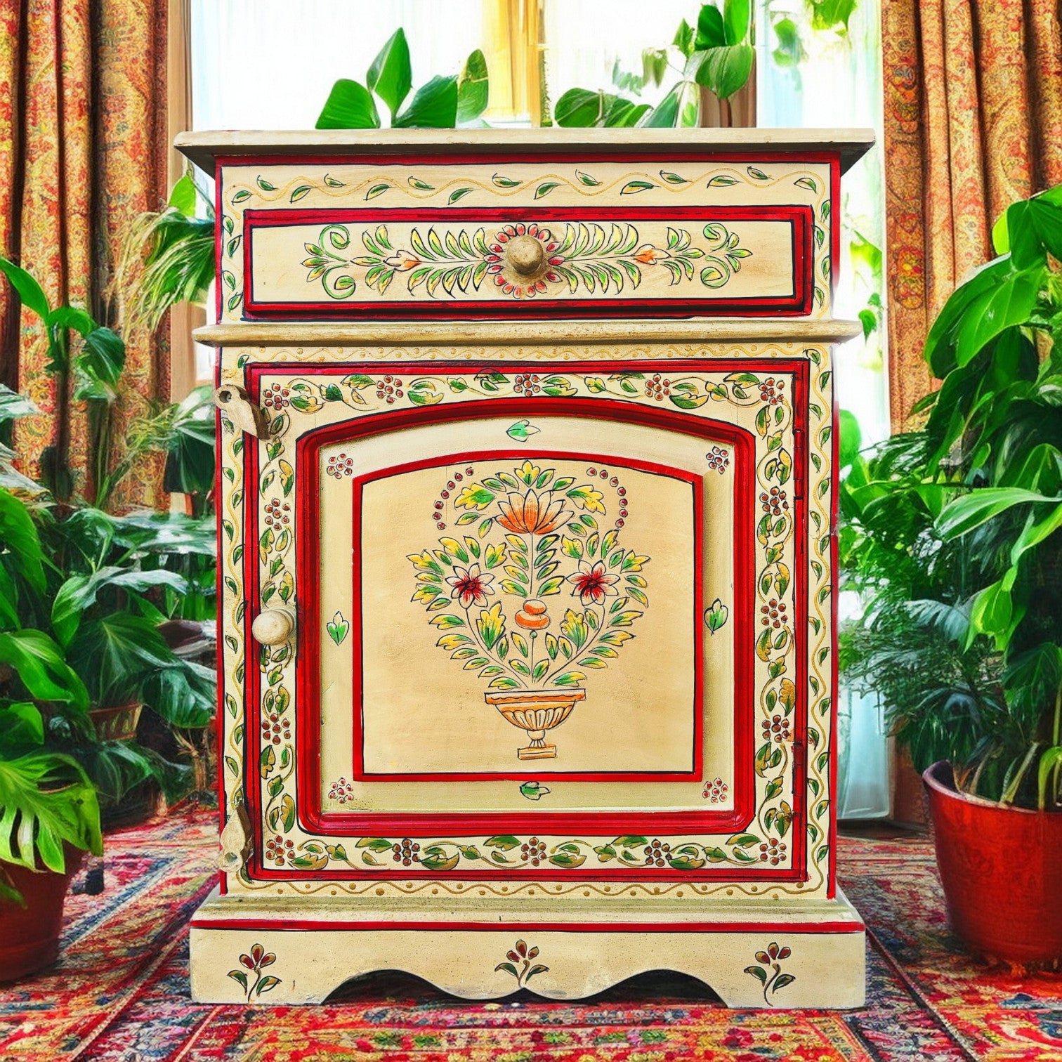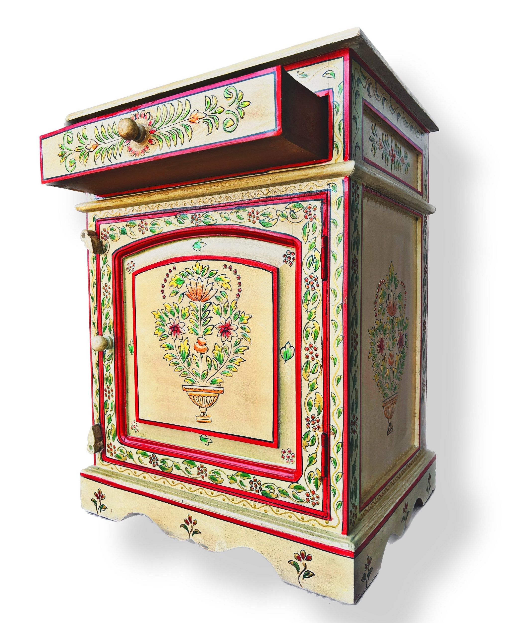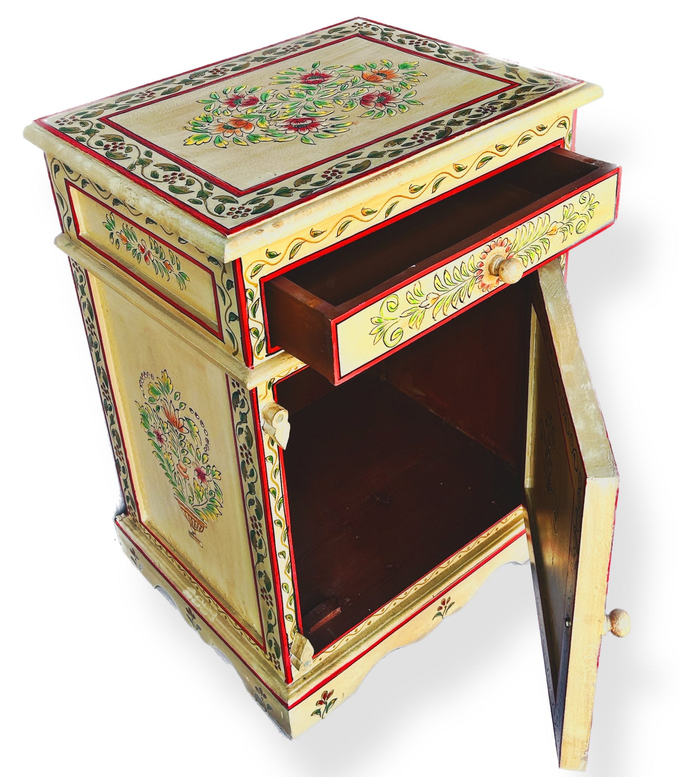 Vintage Asia Handbemaltes Indisches Kästchen Nachttisch - Art. Chest_IRF