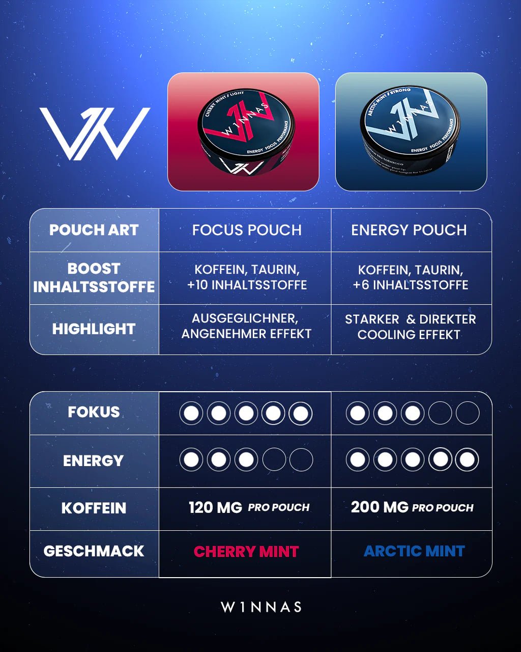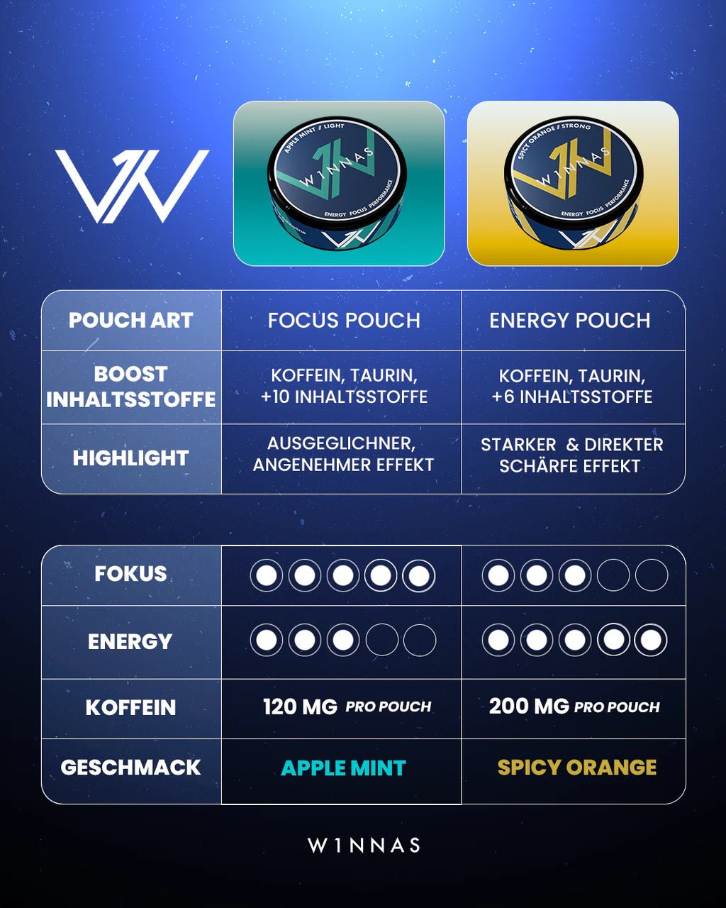 Im Gegensatz zu herkömmlichem Snus, der hohe Dosen von Nikotin und Tabak enthält, sind die W1NNAS Pouches mit gesundheitsfördernden, sauberen Inhaltsstoffen formuliert, die die Leistung ohne die damit verbundenen Risiken unterstützen. Sie bieten eine gesundheitsbewusste Alternative, die keine Kompromisse bei der Wirksamkeit eingeht.