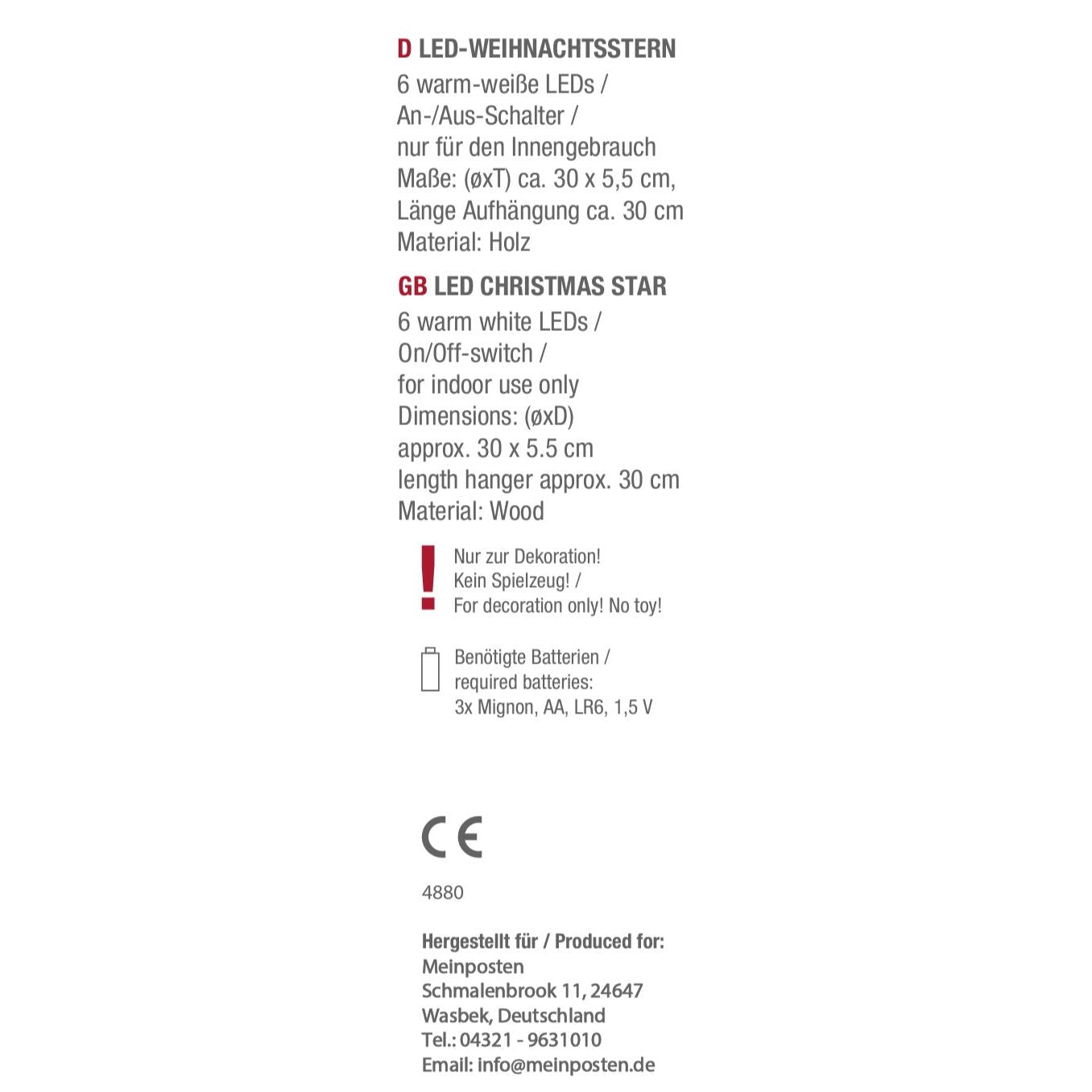 LED Holzstern Beleuchteter Stern aus Holz mit 6 warmweißen LEDs & inklusive Batterien. Der Stern ist vorne und hinten gleich... Lesen Sie mehr