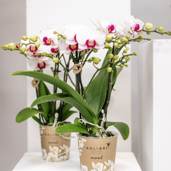 Die Phalaenopsis-Orchidee ‘Mineral Gibraltar’ besticht durch ihre reinen weißen Blüten, die in elegantem Kontrast zum dunkelgrünen Laub stehen. Mit einer Topfgröße von Ø9 cm eignet sich diese Orchidee perfekt für kleine Stellflächen wie Fensterbänke, Regale oder Beistelltische. Ihre lange Blühdauer und die edle Ausstrahlung machen sie zu einer beliebten Zimmerpflanze – ob für dich selbst oder als stilvolles Geschenk.