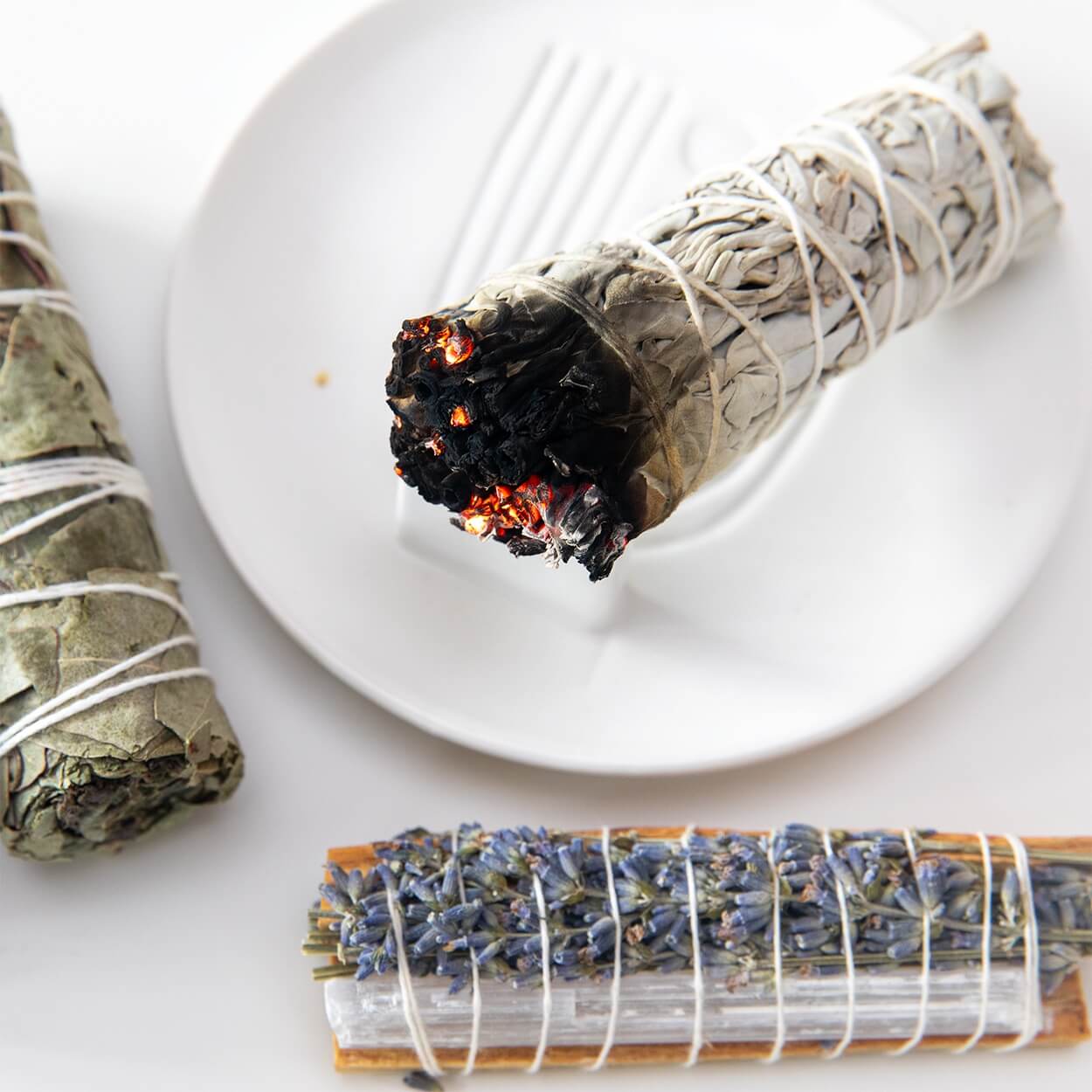 Weißer Salbei räuchern | Räucherbündel Starter Set | mit Räucherschale