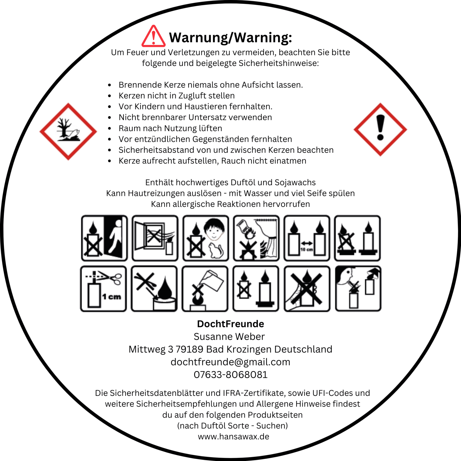 Material: 90% Sojawachs (vegan, paraffin- und GMO-frei, sauberes Abbrennen), 10% hochwertiges Duftöl