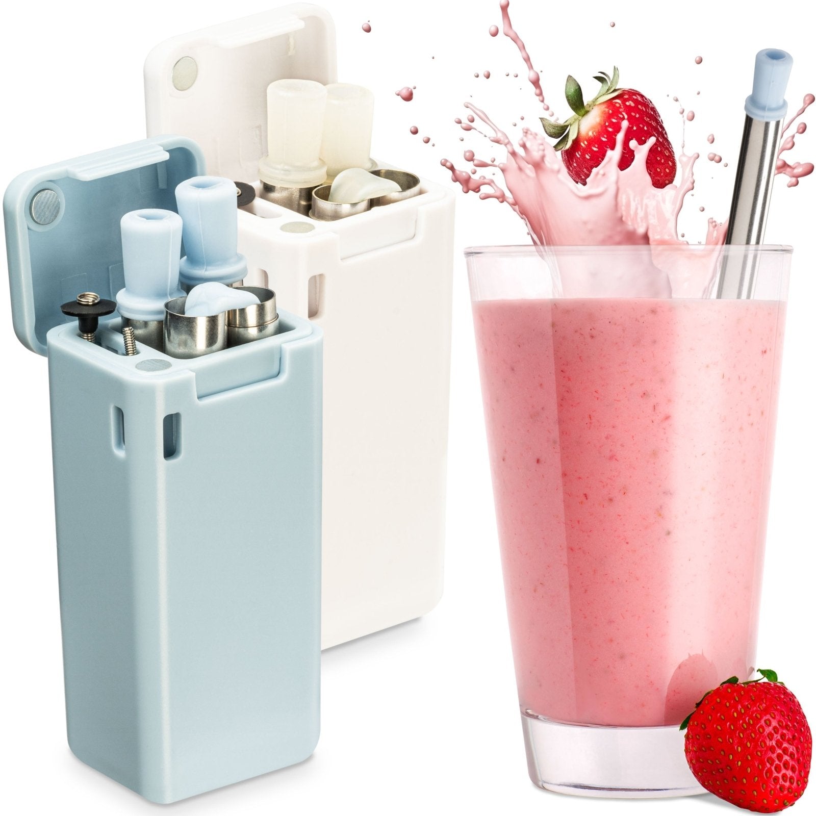 Wiederverwendbare Strohhalme aus Edelstahl & Silikon Trinkhalme Blau Weiß - 2er Set