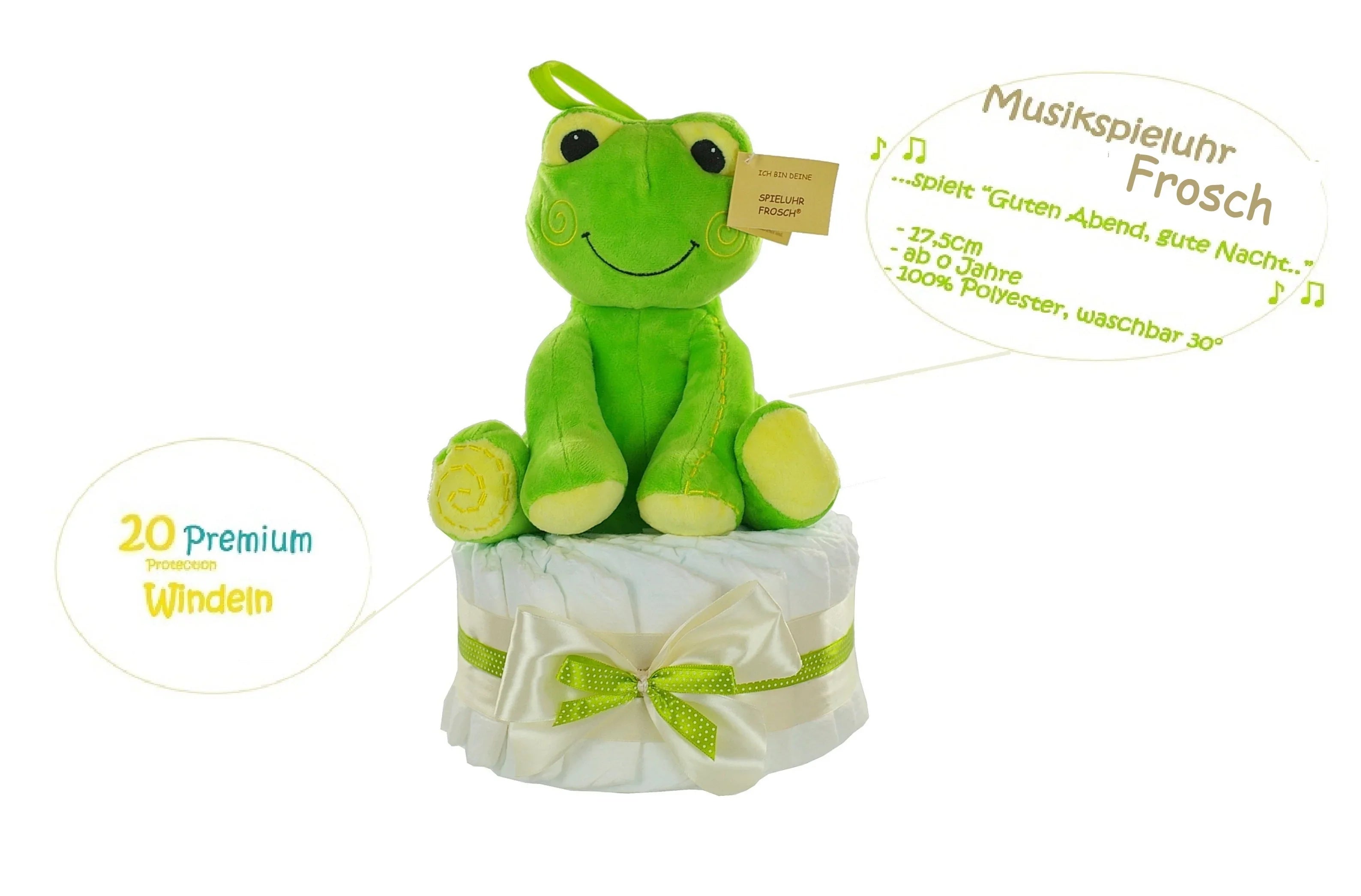 Windeltorte mit Spieluhr FroschEine liebevoll handgefertigte neutrale Windeltorte mit kuscheliger Frosch-Spieluhr – das perfekte Geschenk zur Geburt. Ein Freund für... Lesen Sie mehr