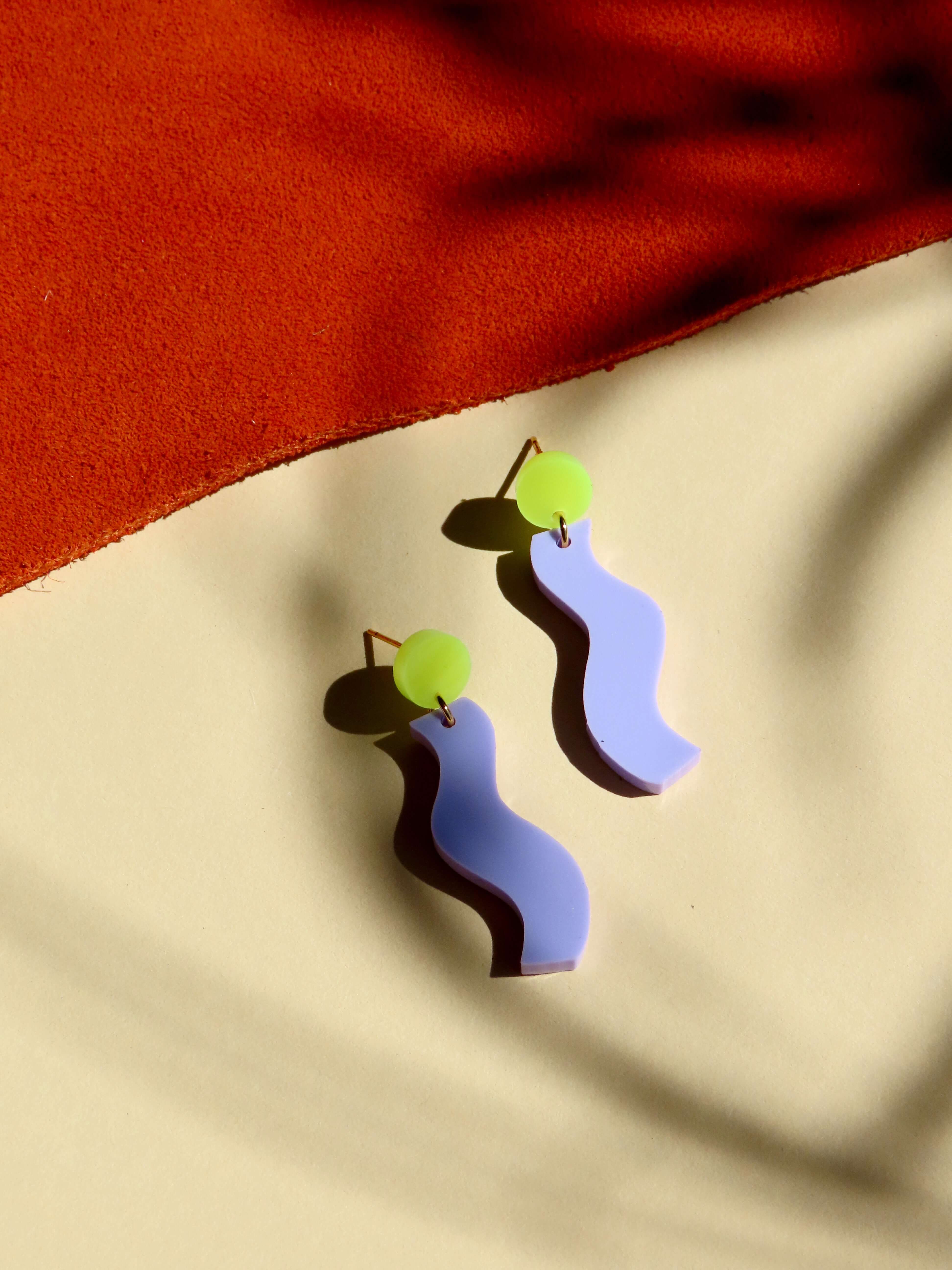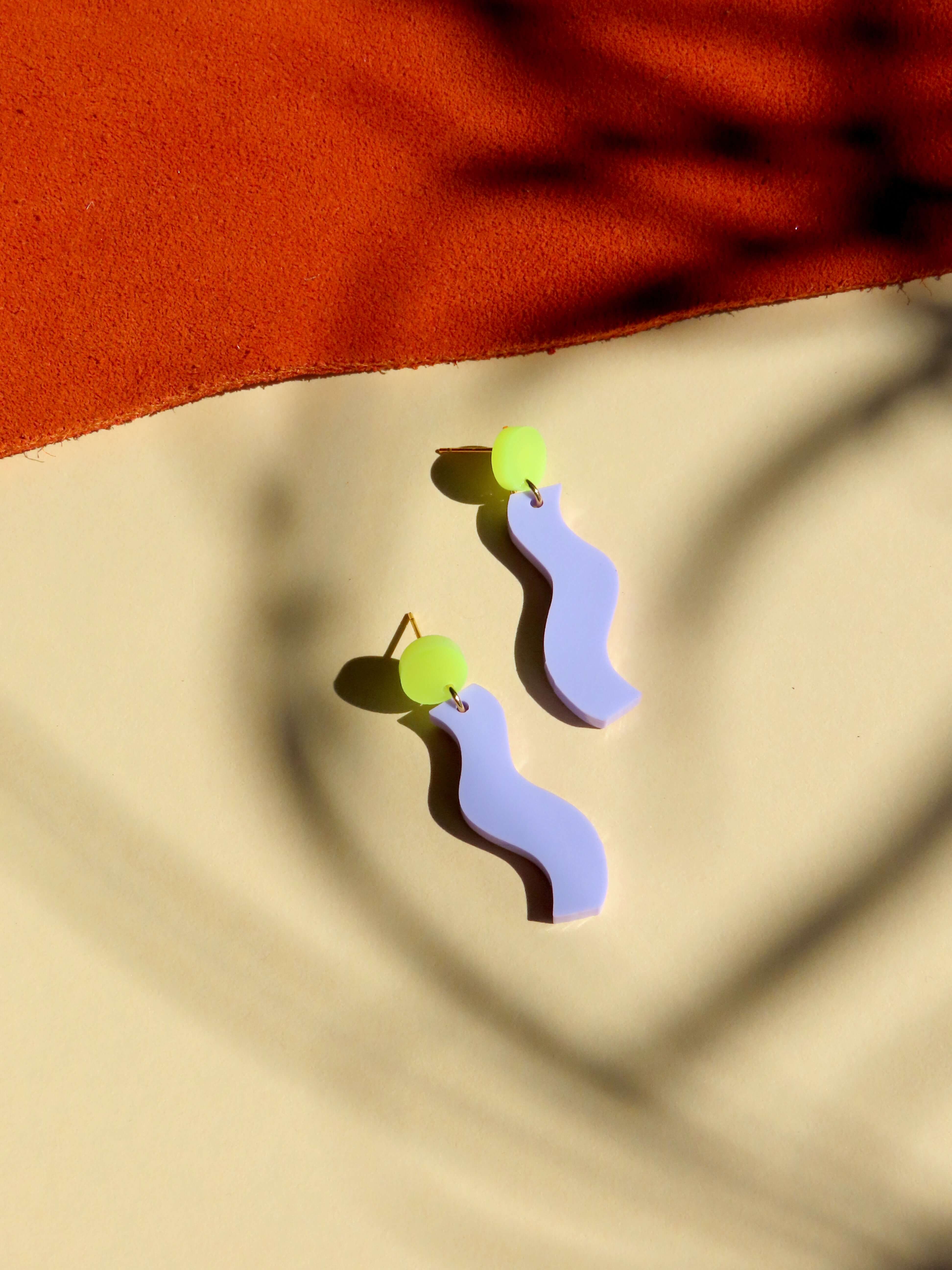 Wormly Ohrringe mit Edelstahl Steckern in neongelb flieder